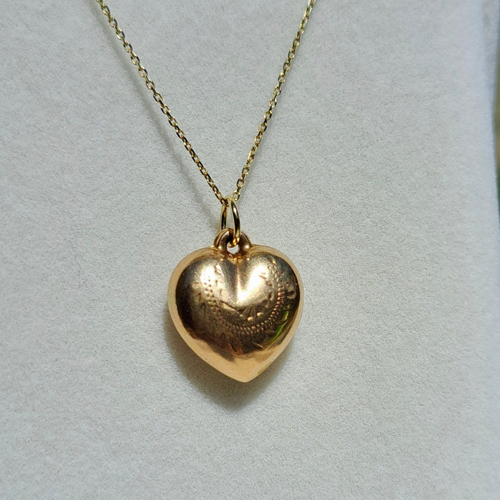 Vintage 9ct Gold Patterned Heart Charm, 1956