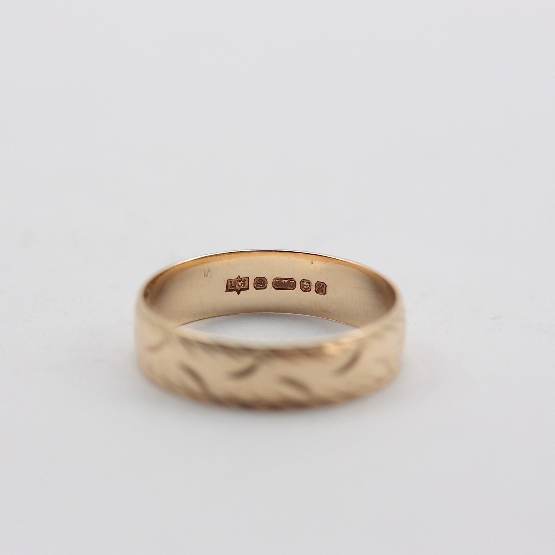 Hallmarks: 'LW', Crown, '375', London, 'N' for 1987.