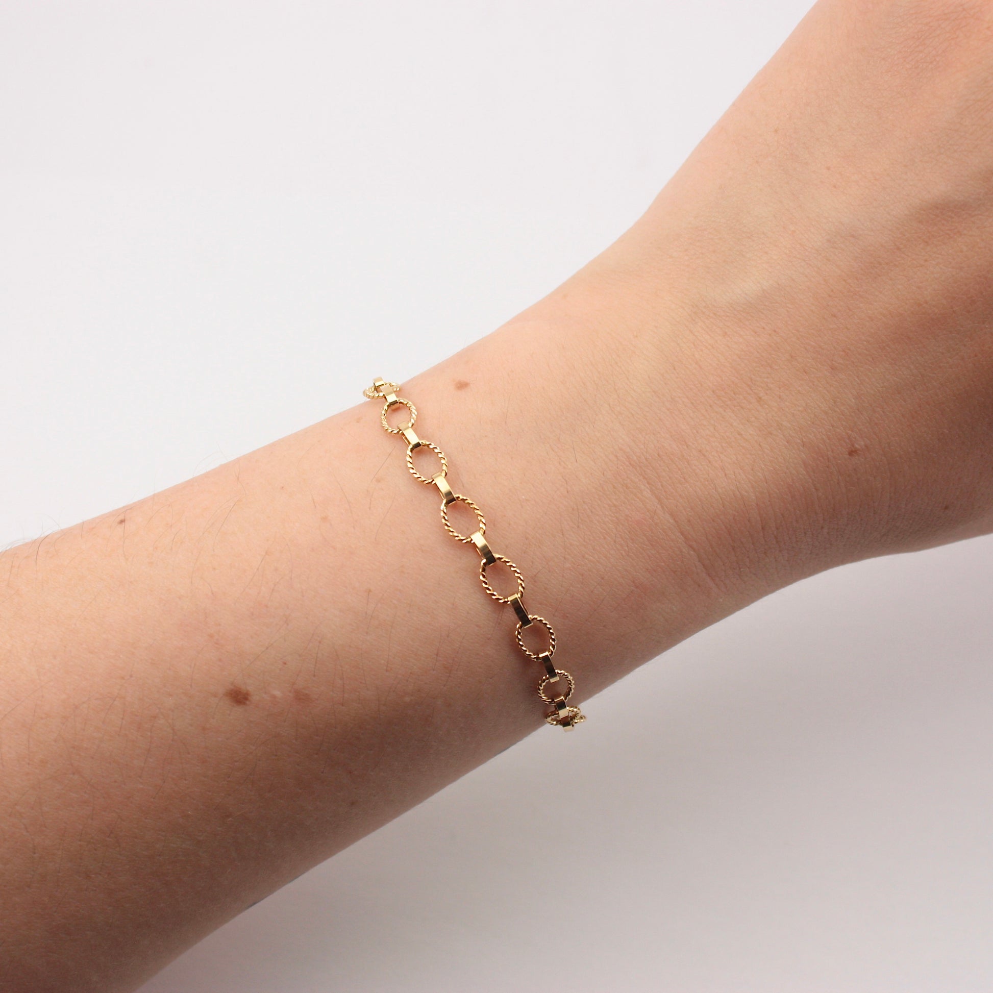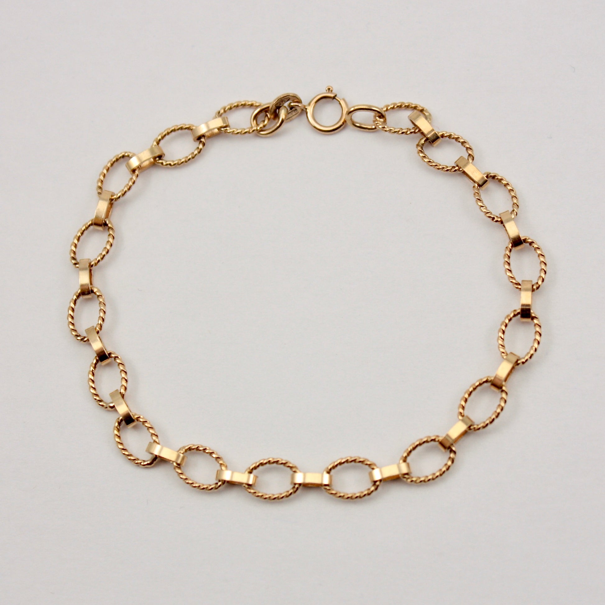 A pretty 9ct yellow gold bracelet in alternating plain and rope style links.