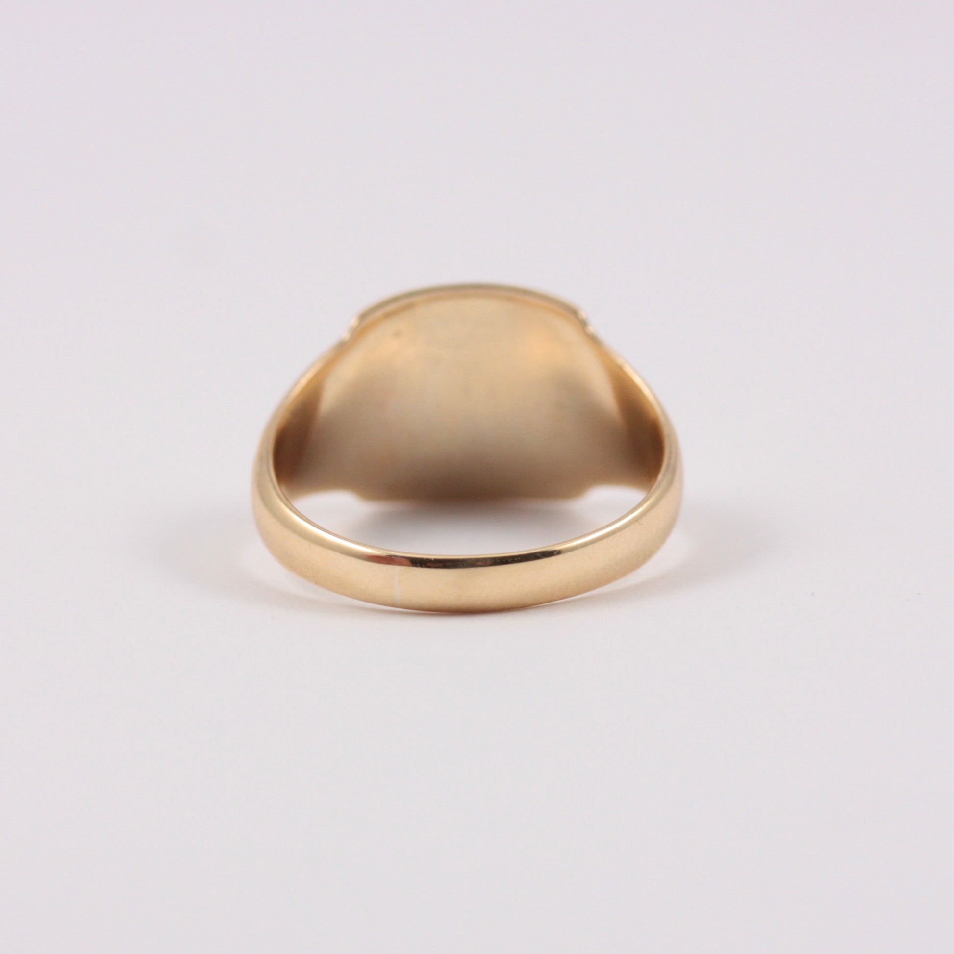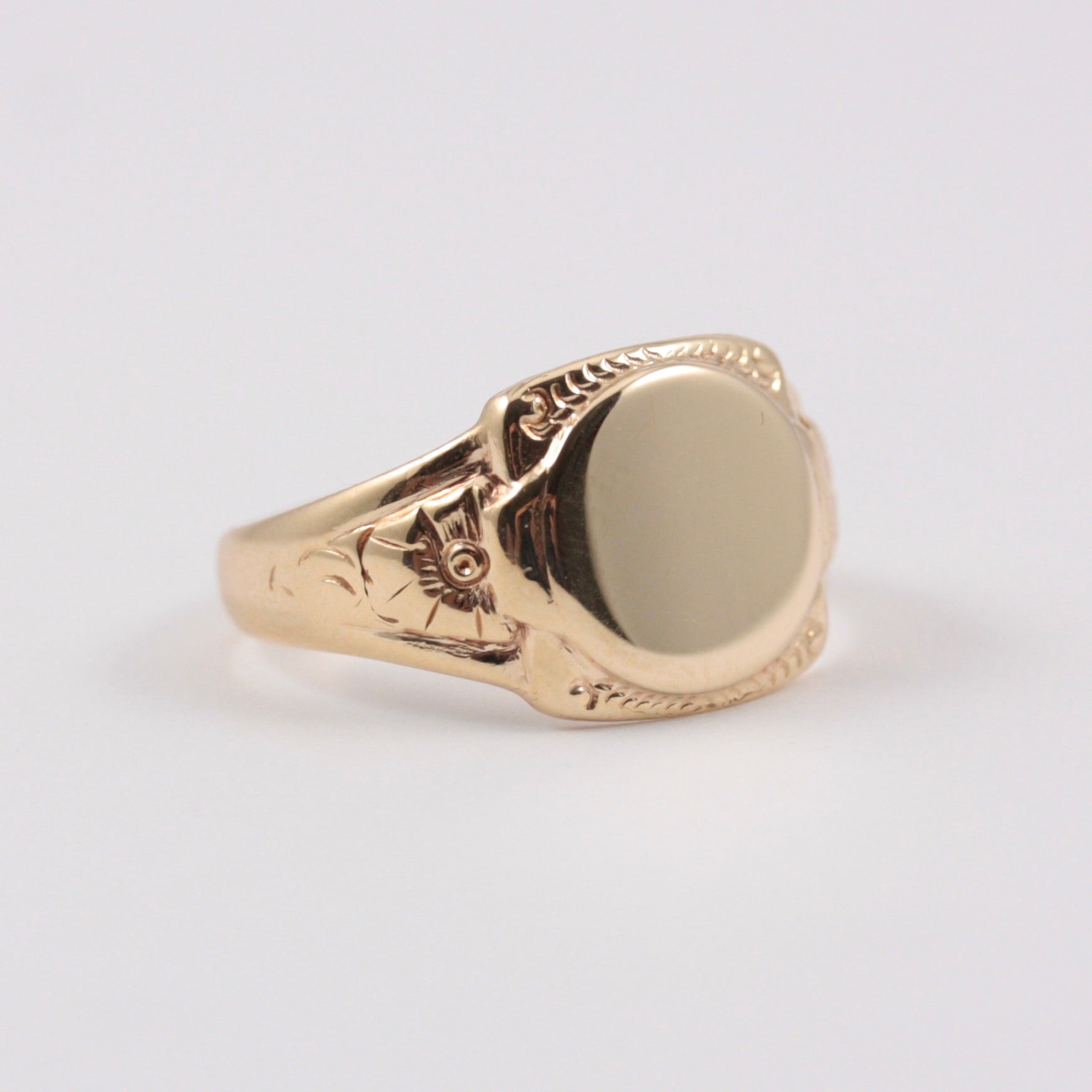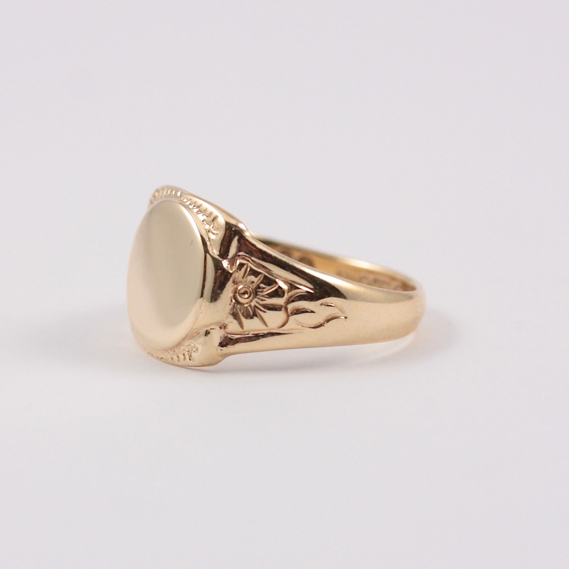 Vintage 9ct Gold Round Blank Signet Ring with Floral Shoulders, 1947