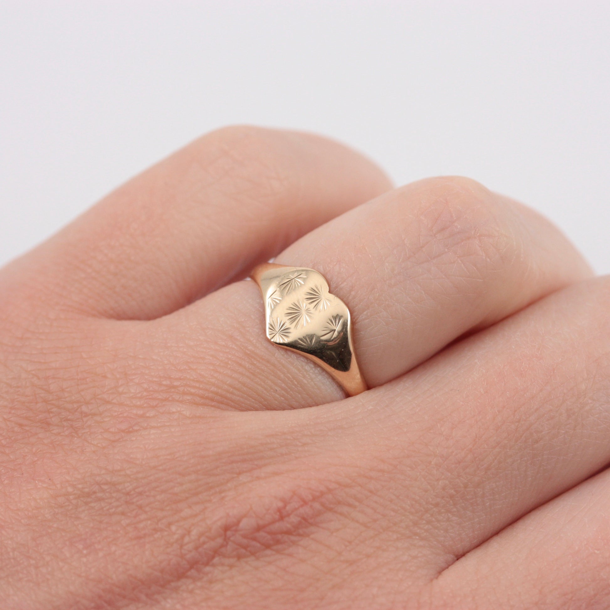 Vintage 9ct Gold Star Engraved Heart Signet Ring, 1977