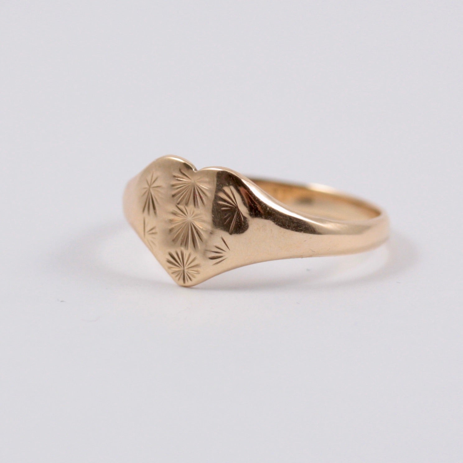 Vintage 9ct Gold Star Engraved Heart Signet Ring.