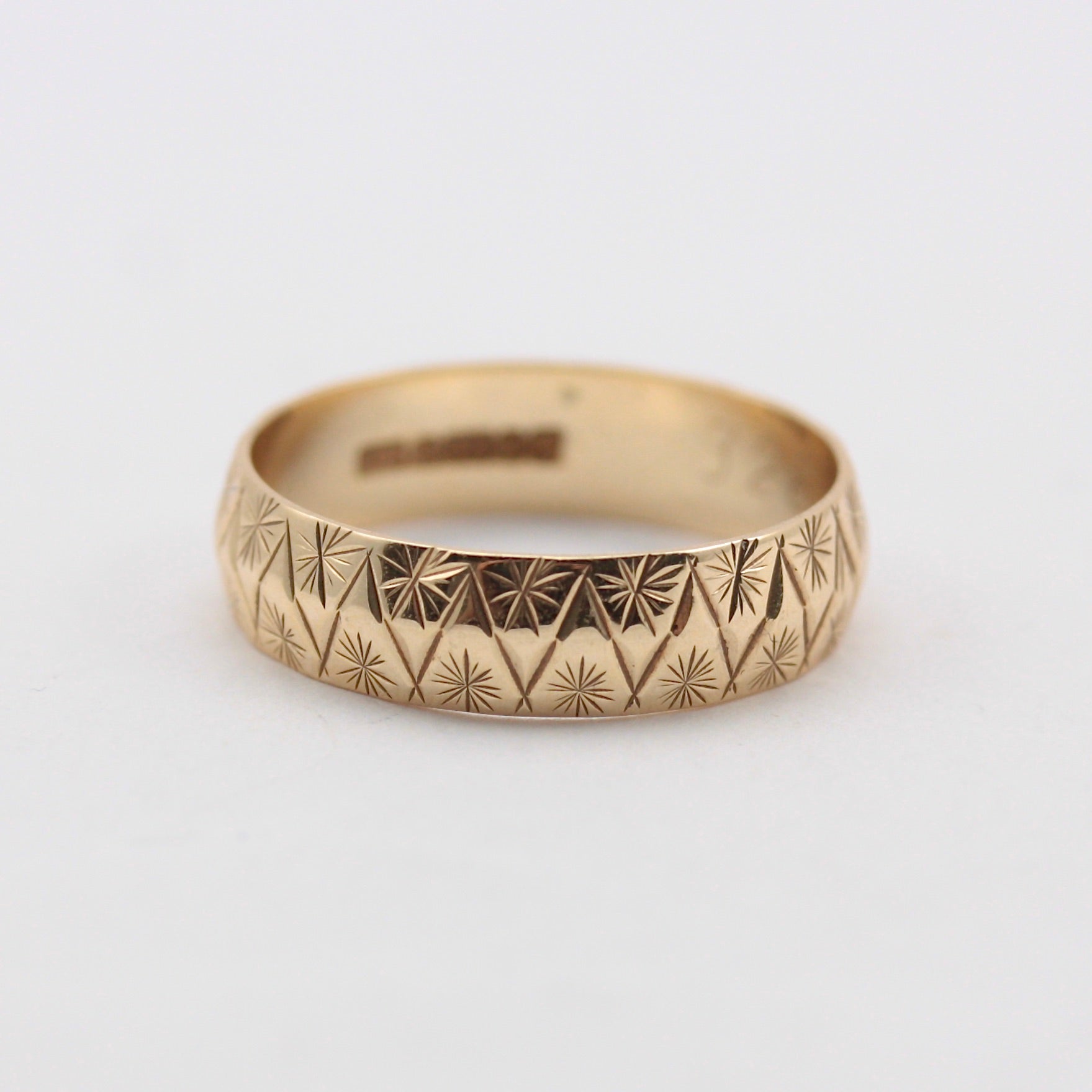 Vintage 9ct Gold Star Patterned Band Ring, 1986