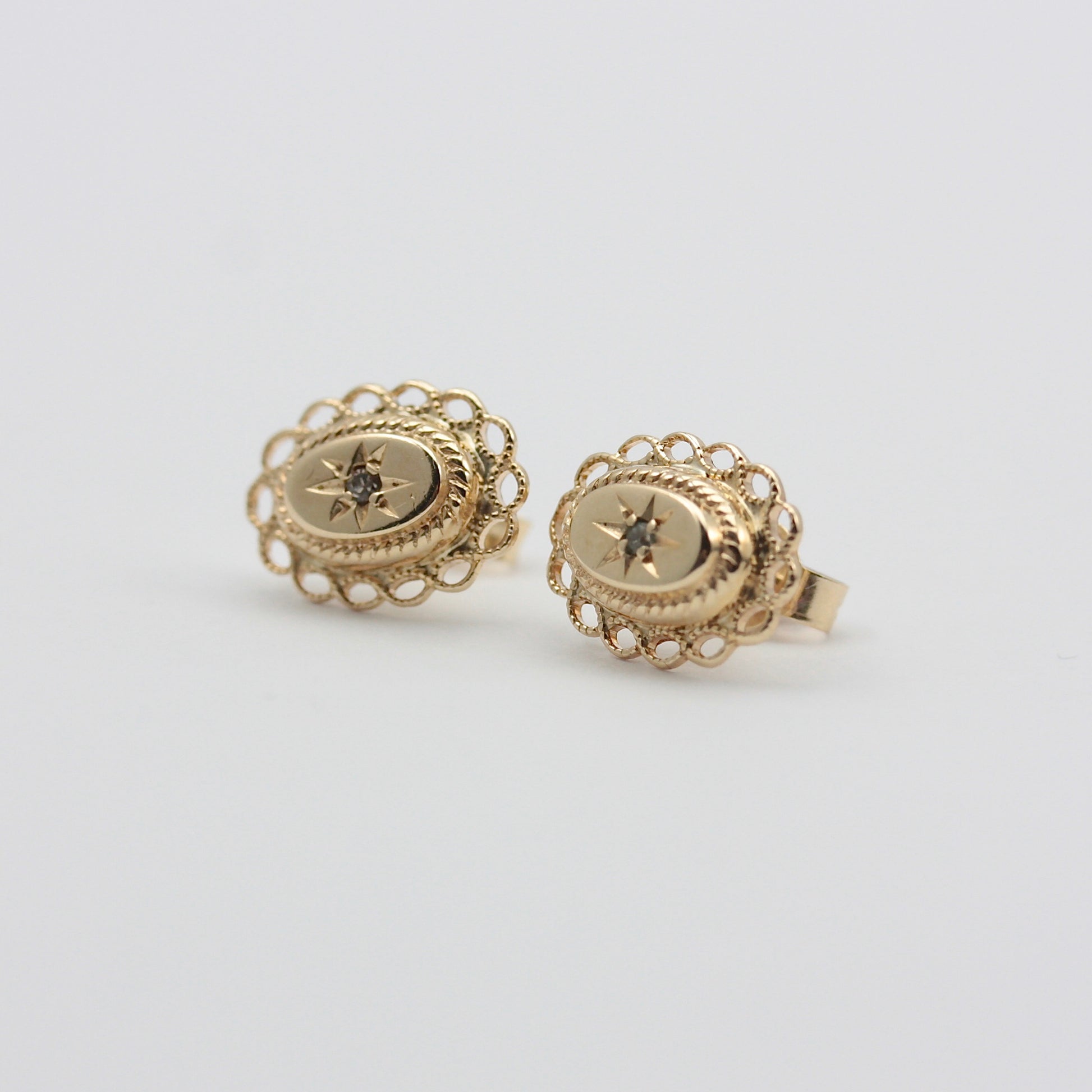 Vintage 9ct Gold Star Set Diamond Stud Earrings.