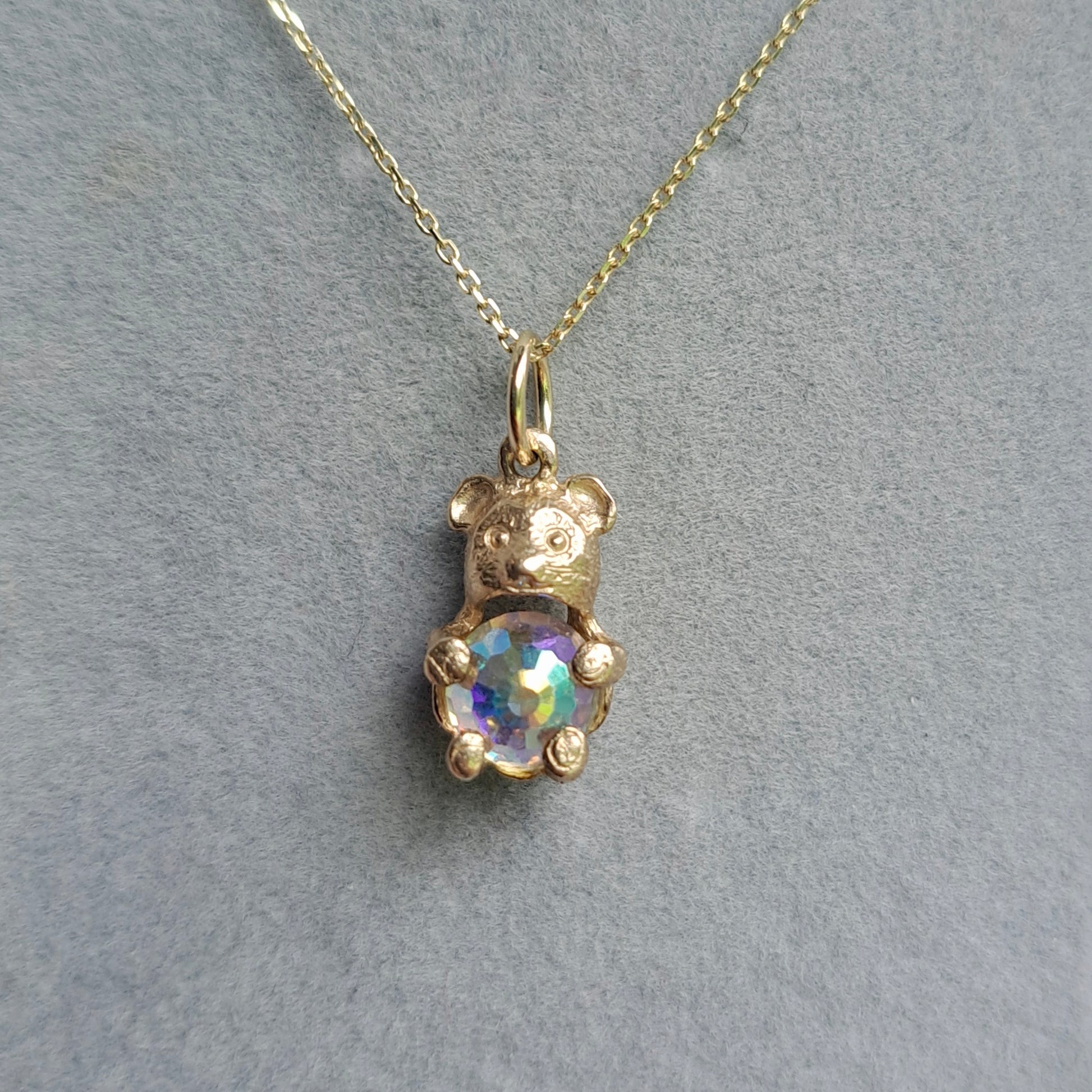 Vintage 9ct Gold Teddy Bear Charm with Aurora Borealis Crystal Belly