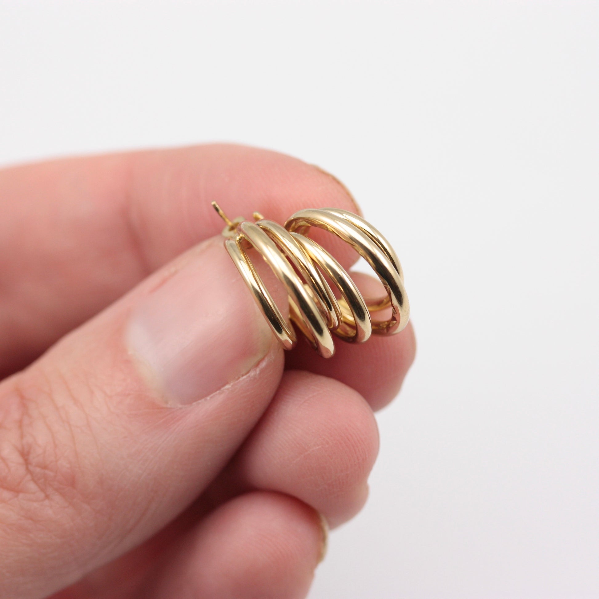 Vintage 9ct Gold Textured Triple Hoop Earrings, Small