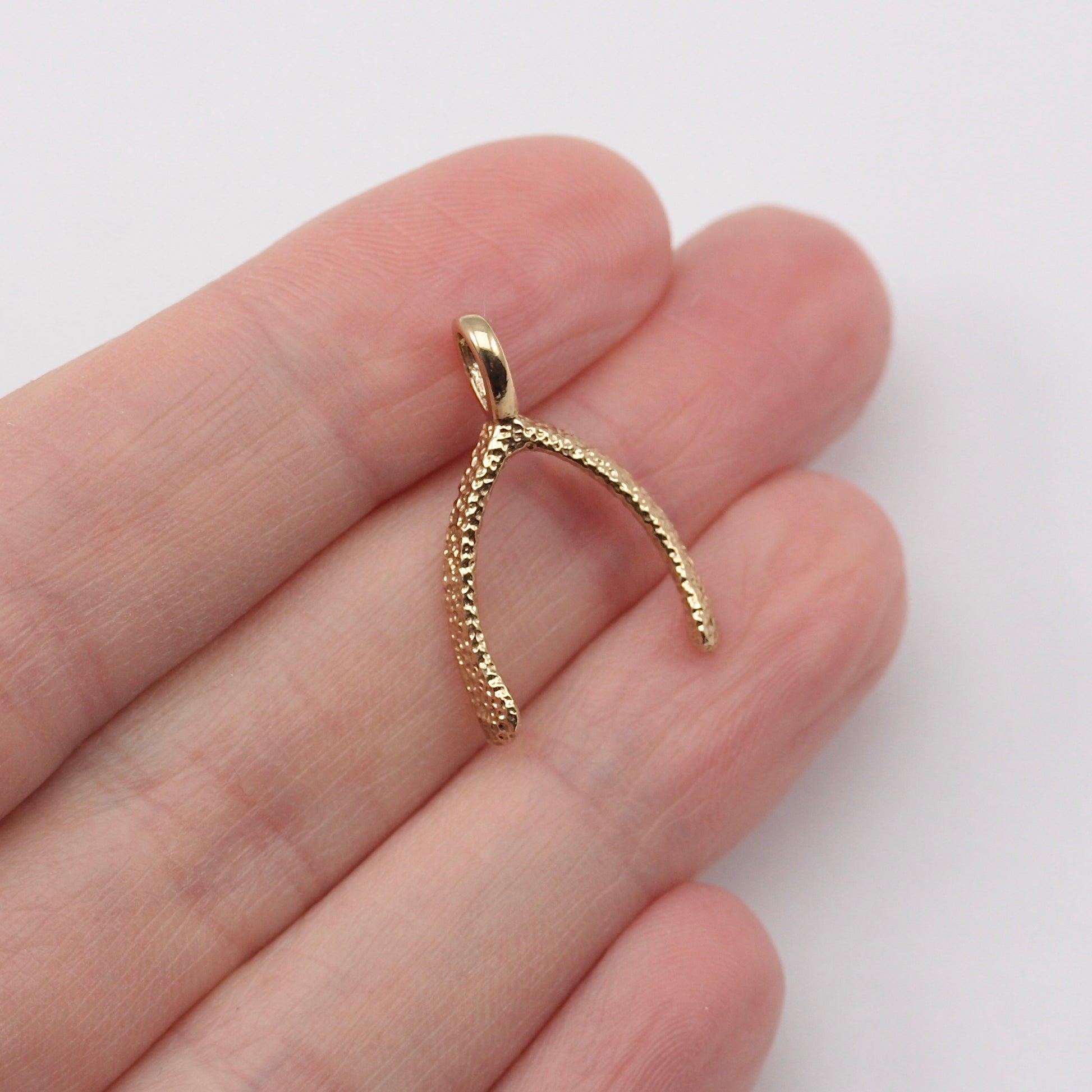Vintage 9ct Gold Textured Wishbone Pendant, 1982