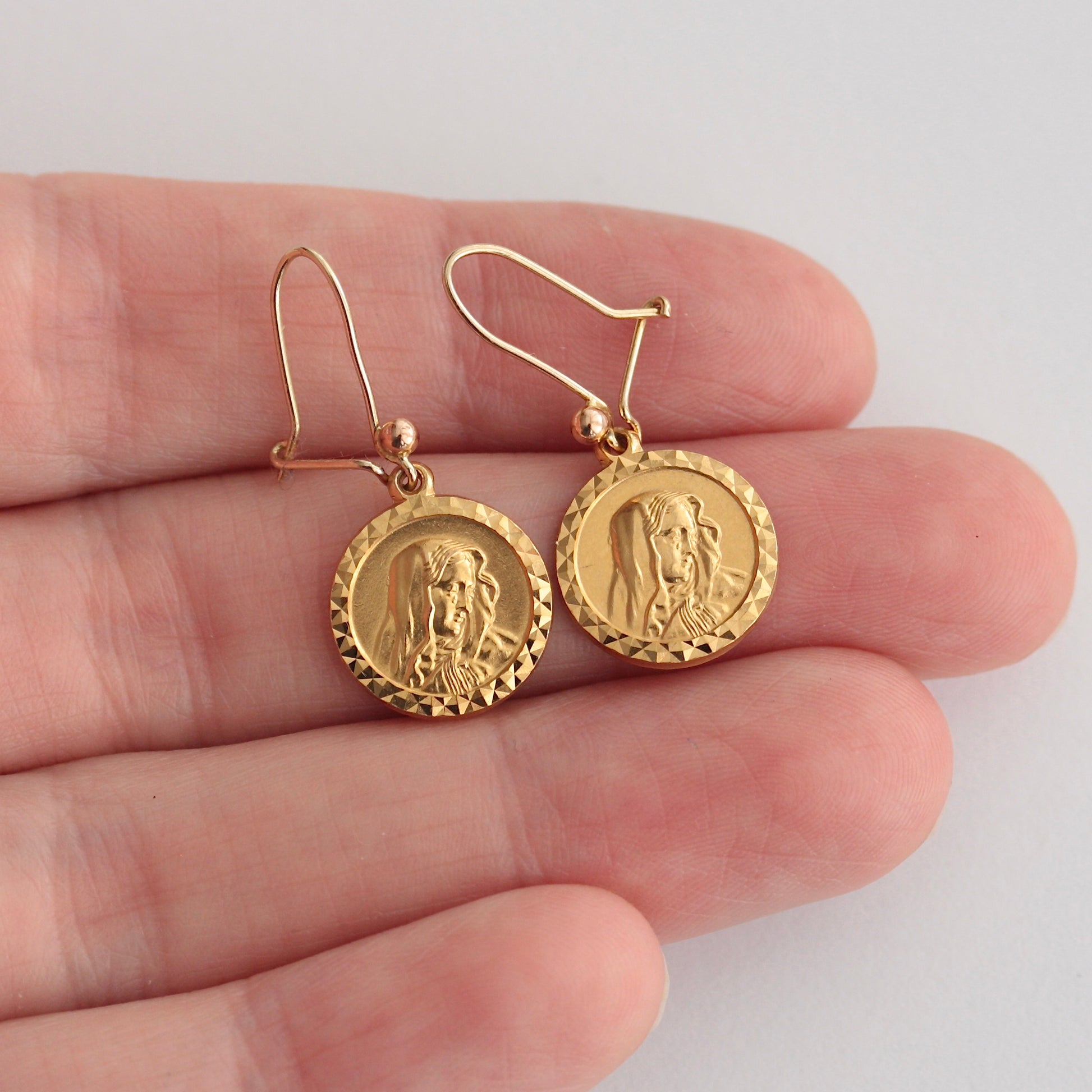 Vintage 9ct Gold Virgin Mary Coin Style Earrings, Georg Jensen Ltd