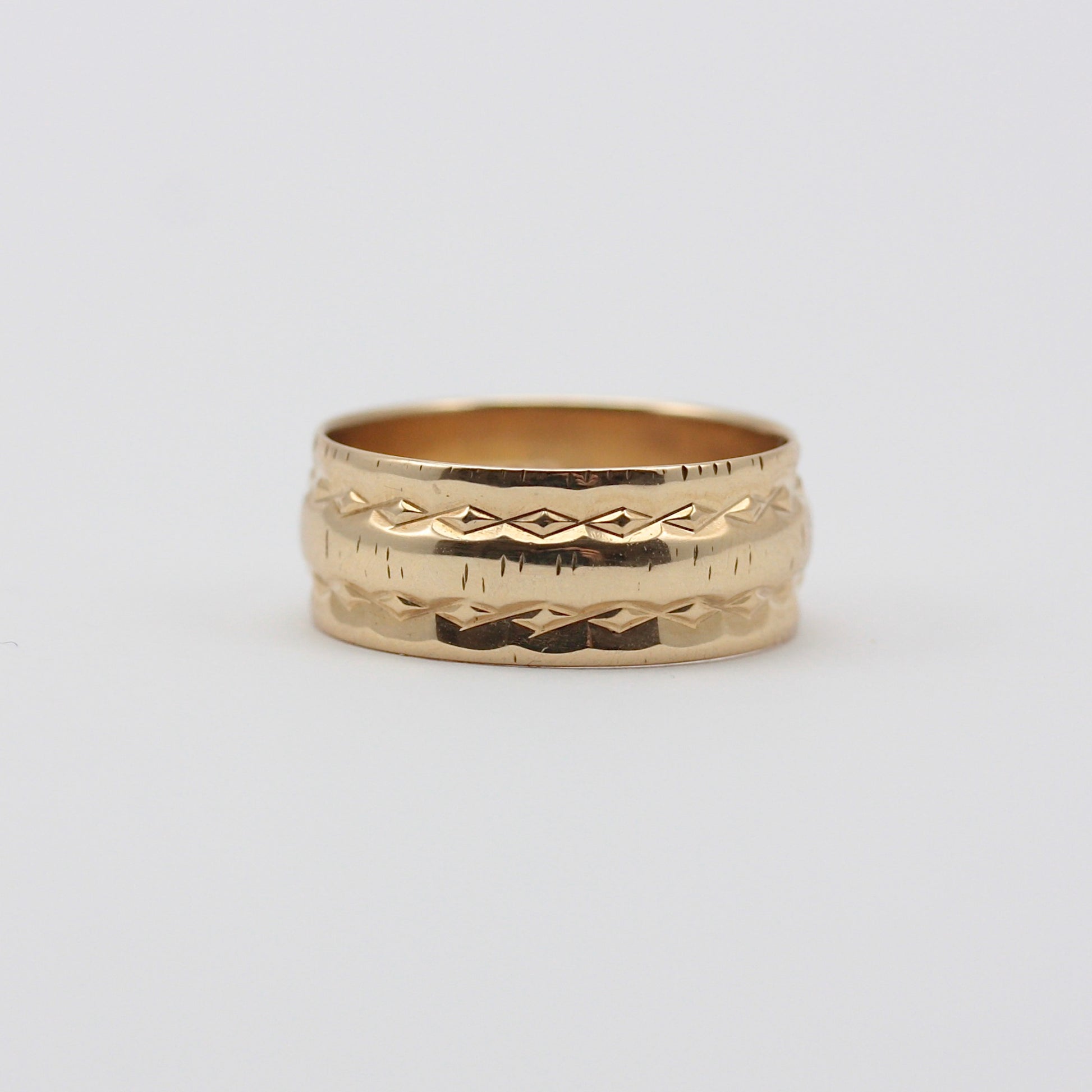 Vintage 9ct Gold Wide Patterned Band Ring.