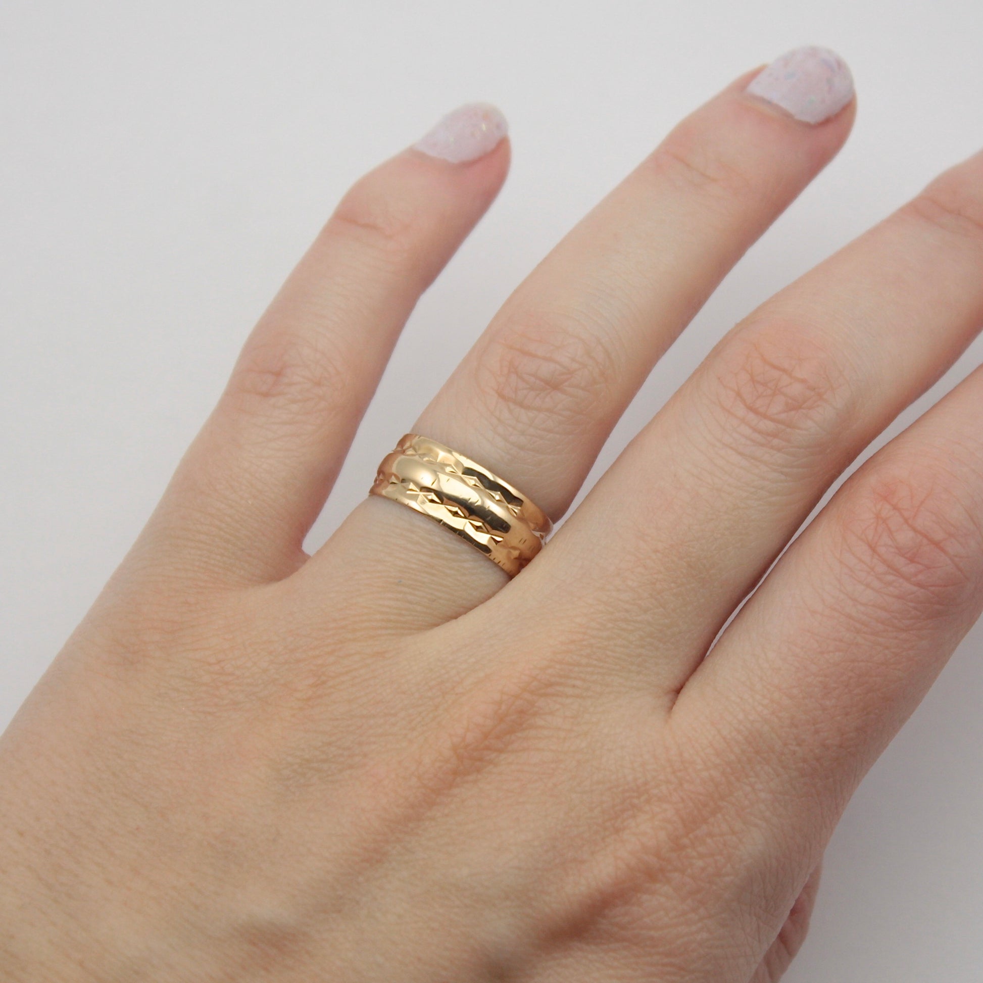 Vintage 9ct Gold Wide Patterned Band Ring, 7mm, 1973