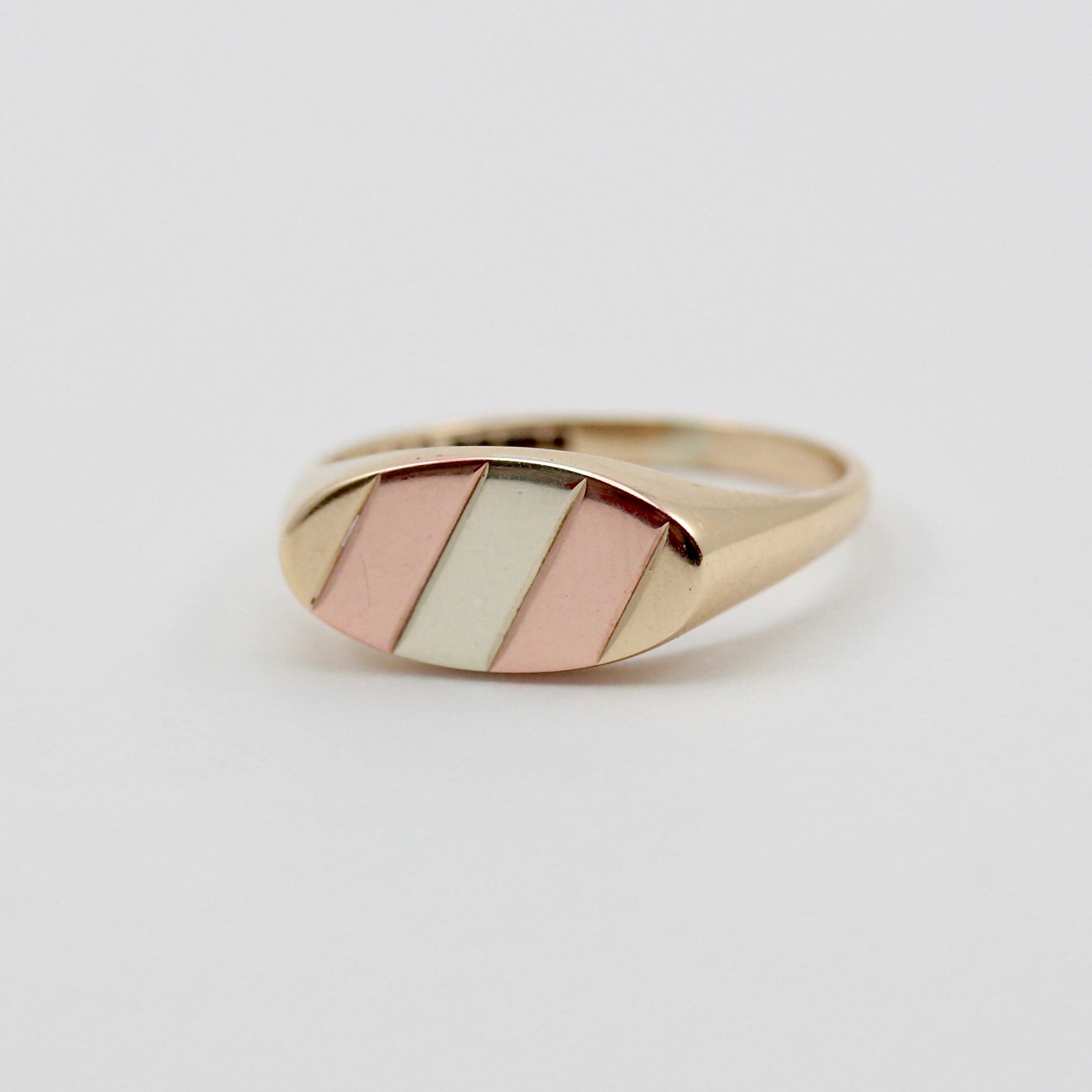 Vintage 9ct Tri Colour Gold Flat Fronted Ring.