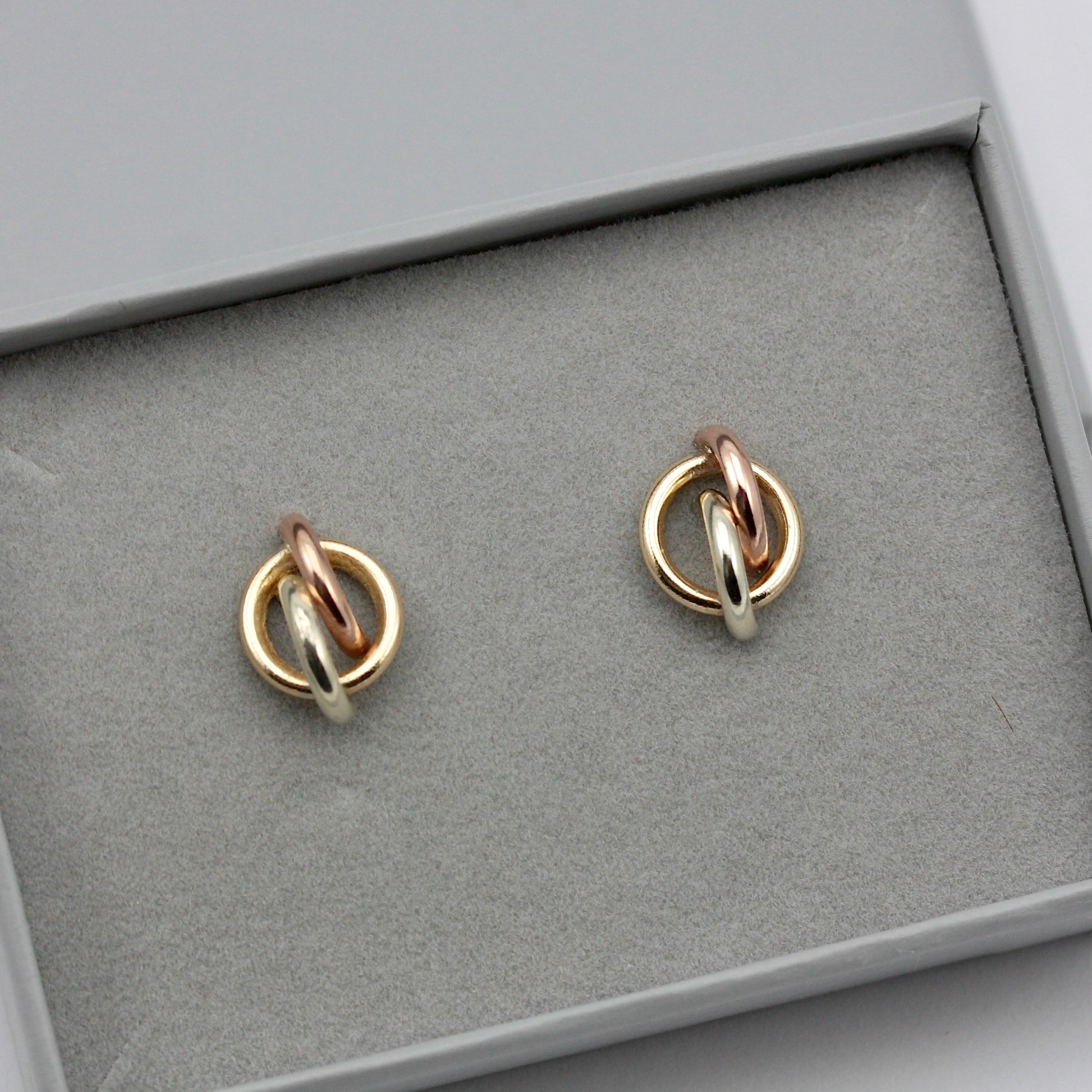 Vintage 9ct Tri Colour Gold Knot stud Earrings.