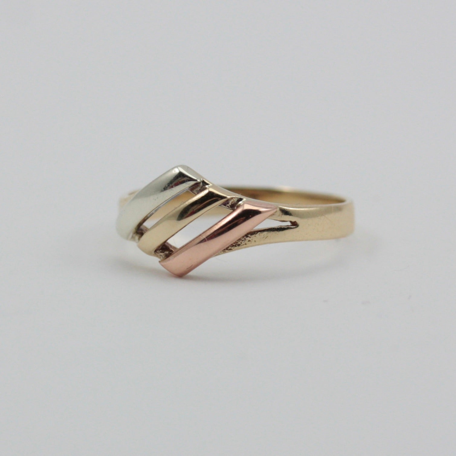 Vintage 9ct Tri Colour Gold Open Stripe Ring