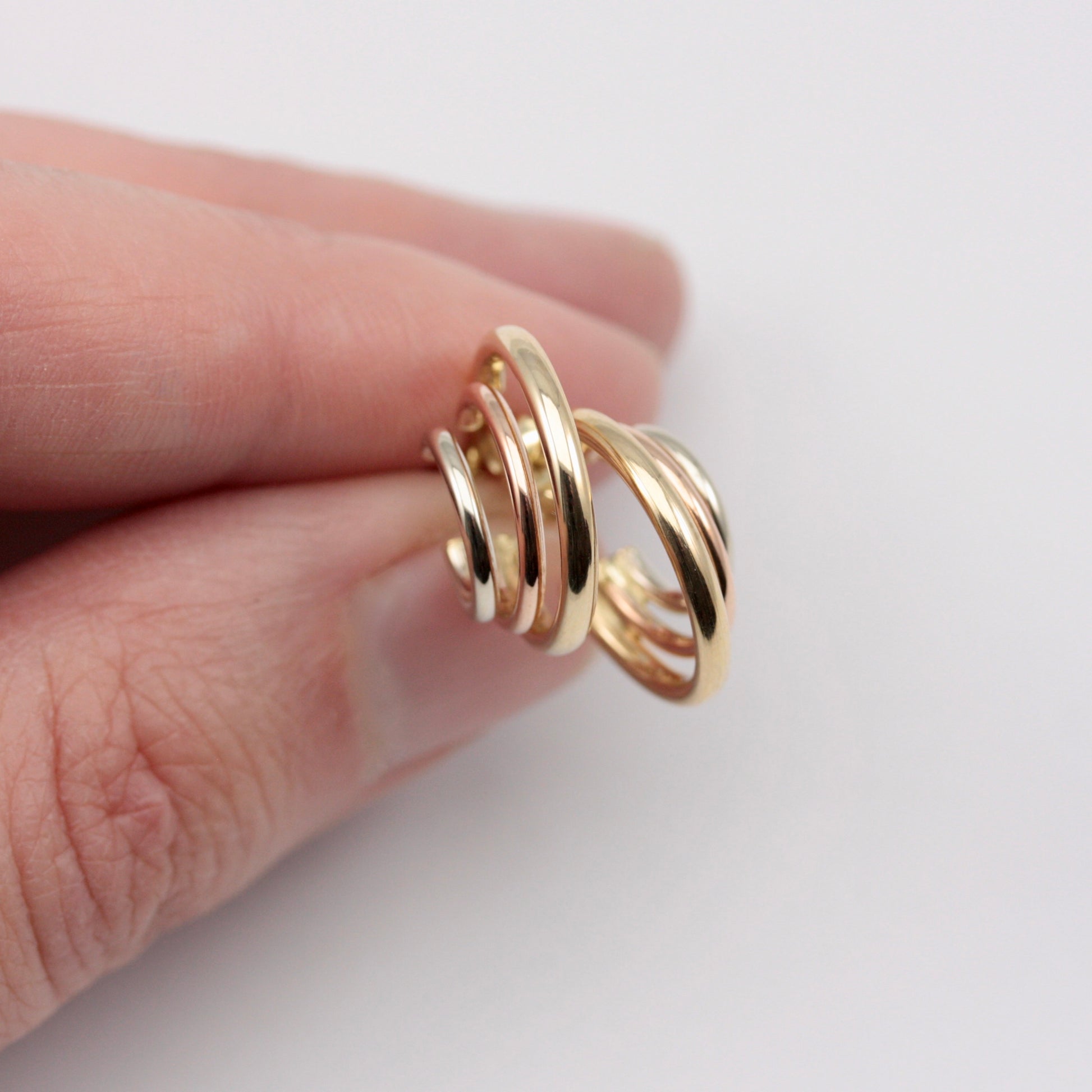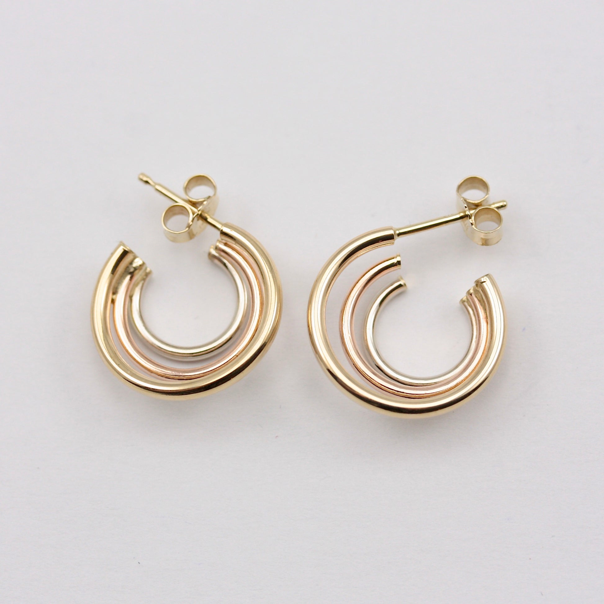Vintage 9ct Tri Colour Gold Triple Hoop Earrings, Small