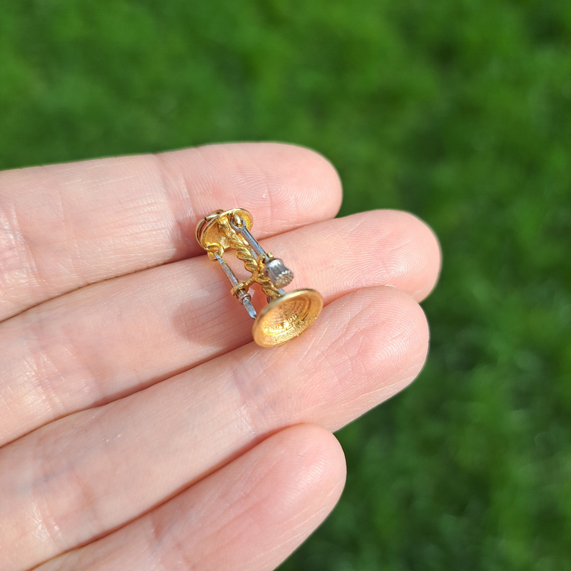 A wonderful vintage 9ct yellow and white gold charm, in the design of a set of fireplace tools. A really unique and quirky charm!