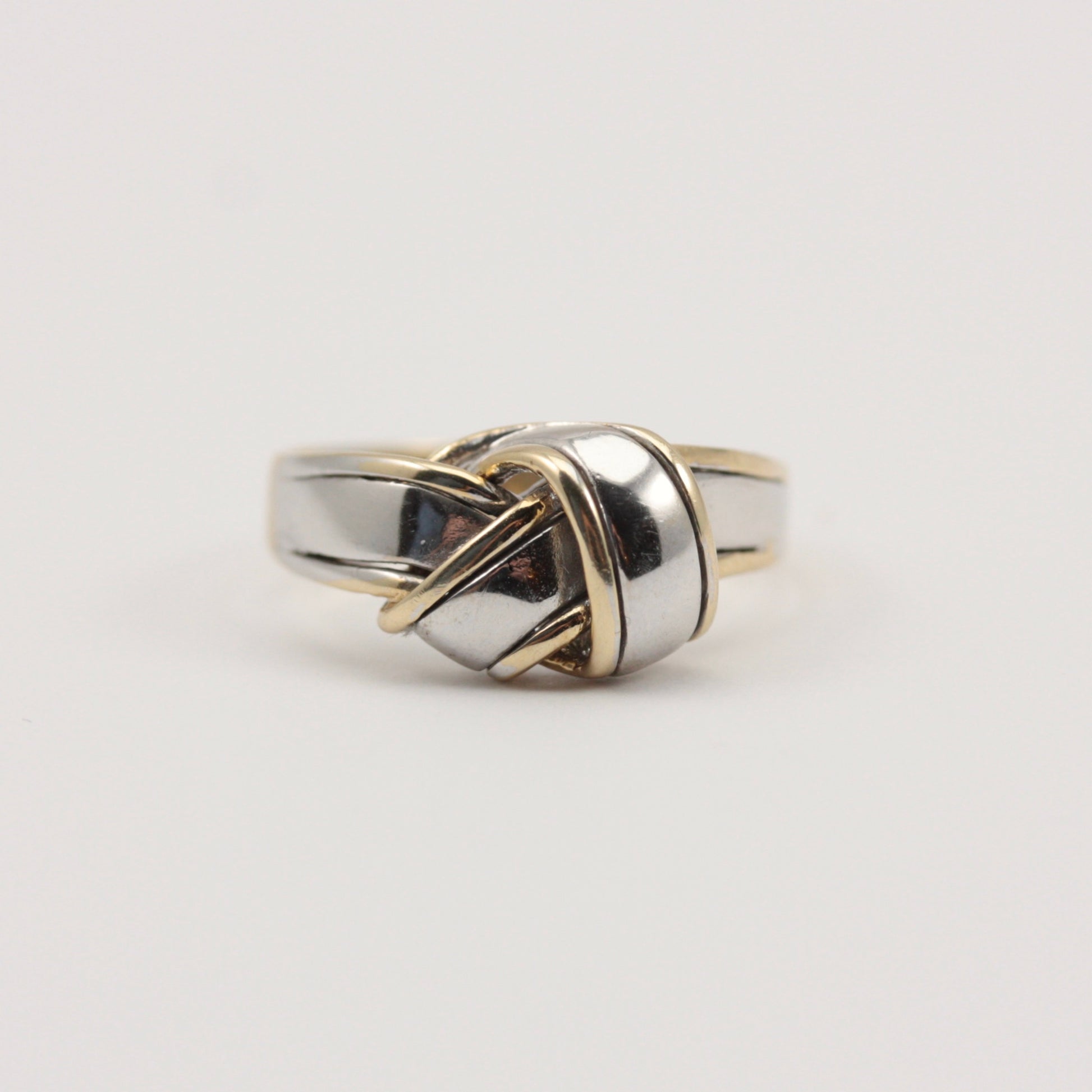 Vintage 9ct White and Yellow Gold Knot Style Ring, 1983