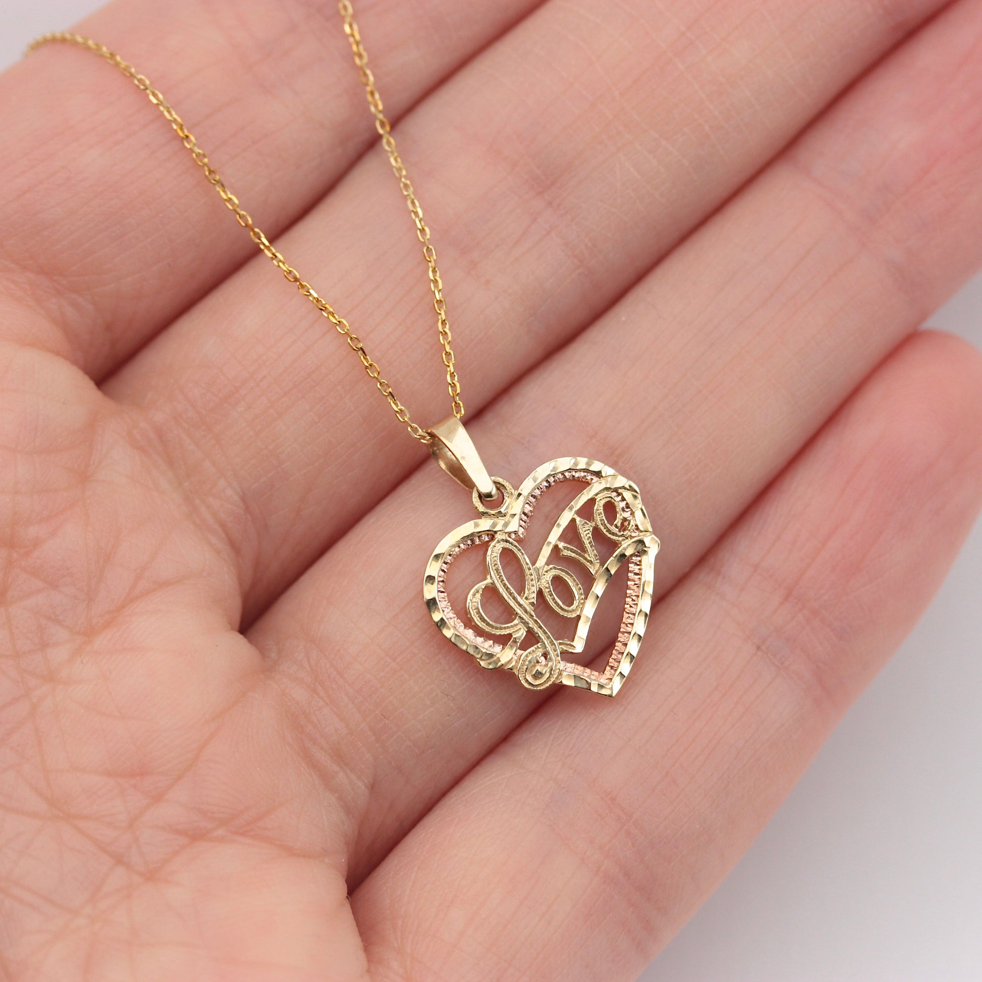 Vintage 9ct Yellow and Rose Gold 'LOVE' Heart Pendant