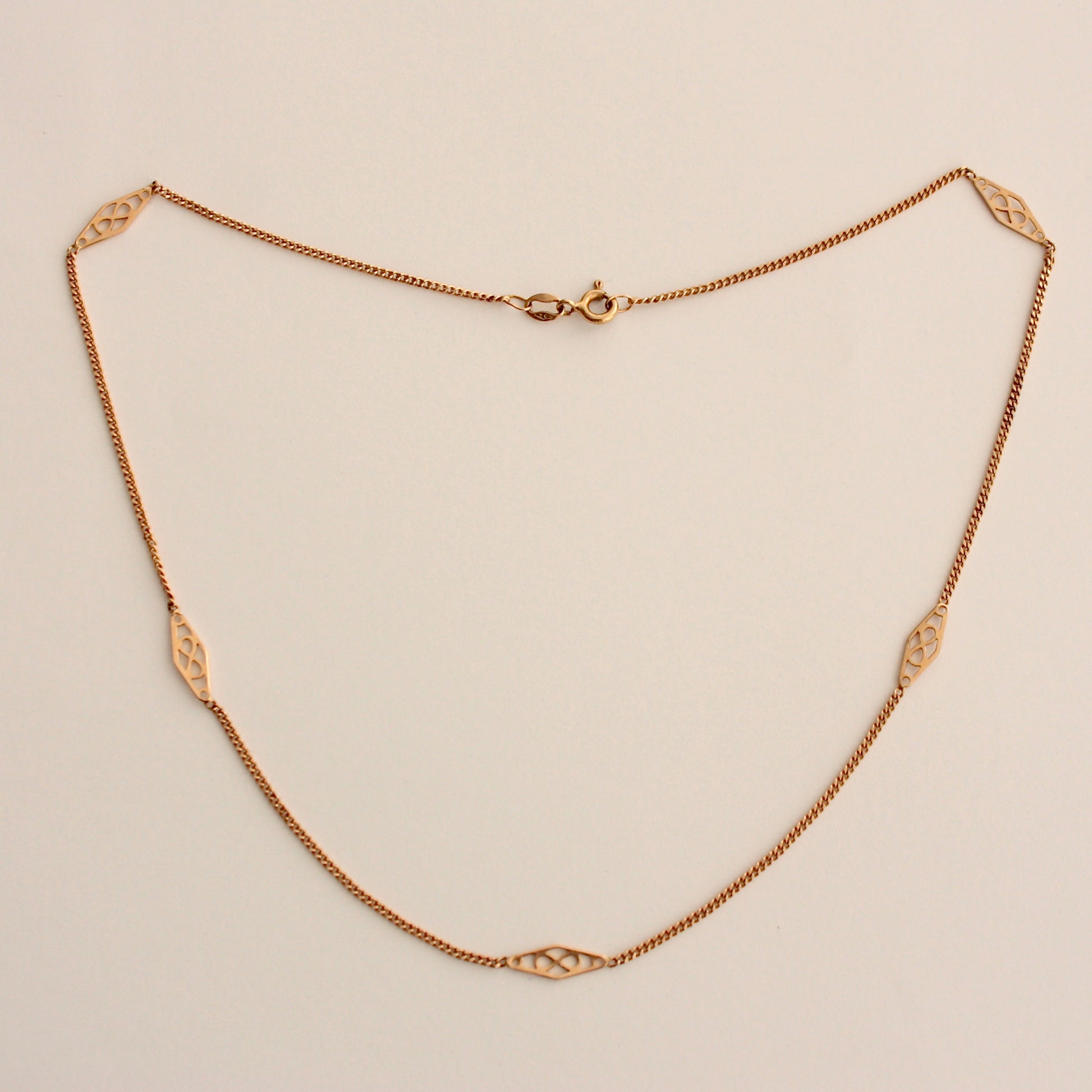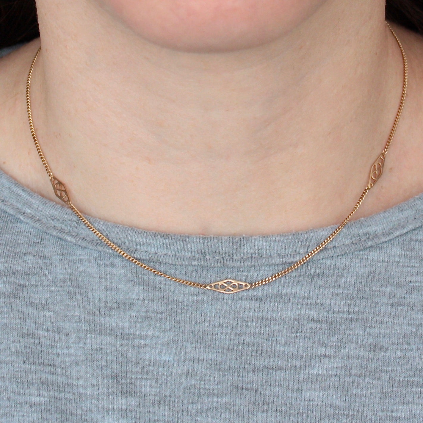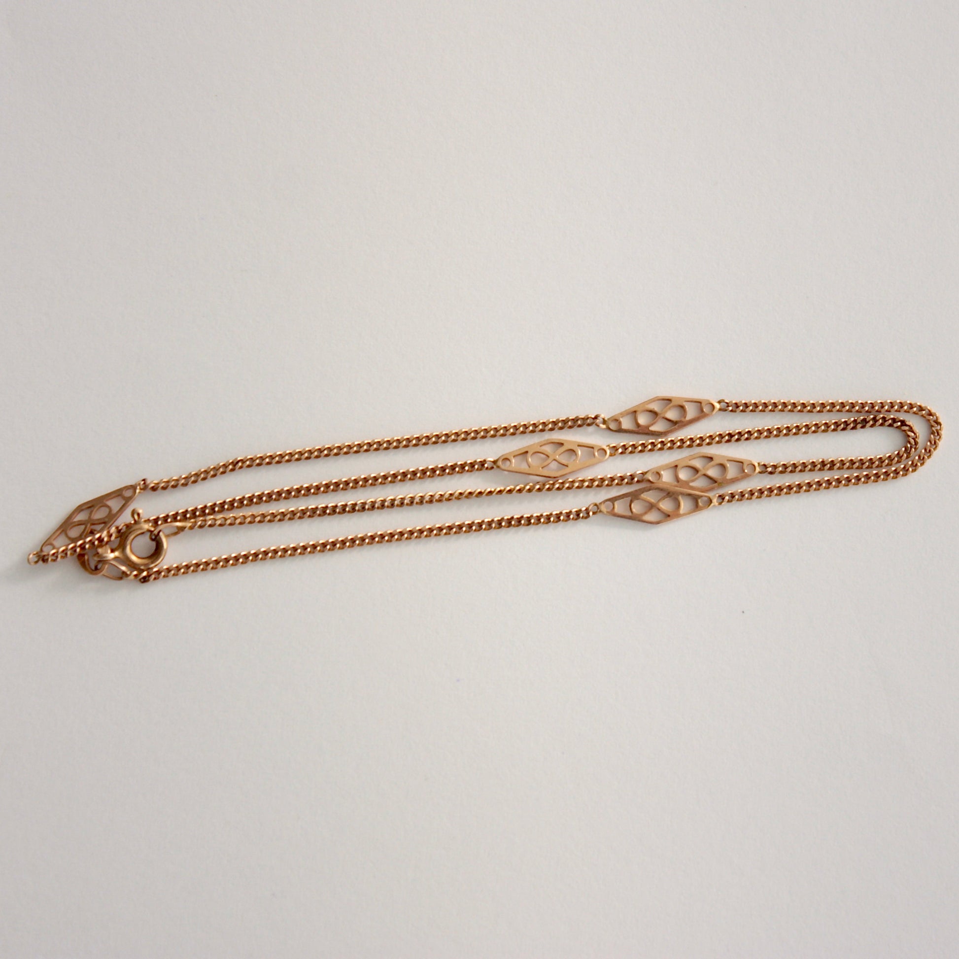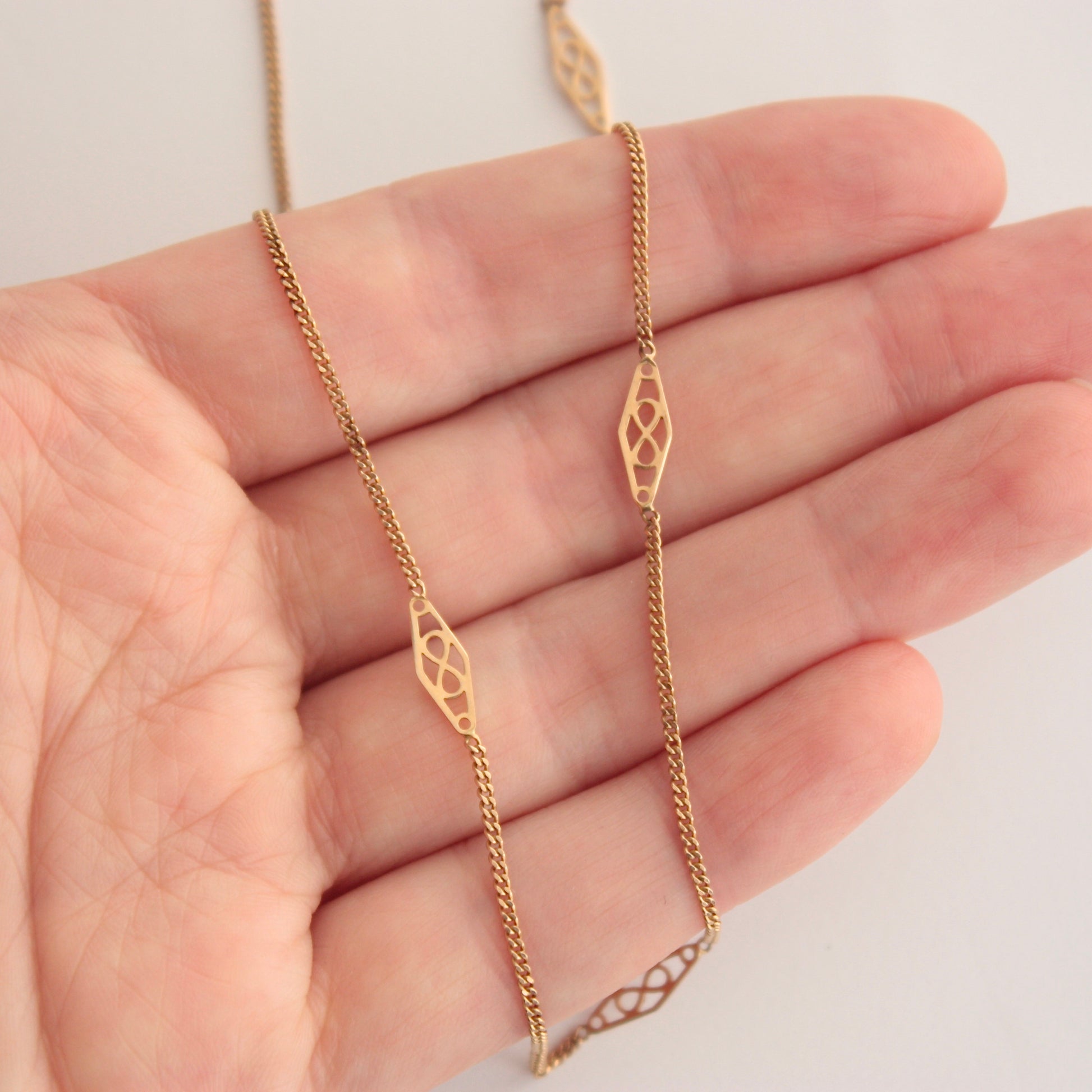 Measurements: 15.25 inches / 39cm. Curb chain is 1.2mm wide. Panels measure 13mm x 4.5mm