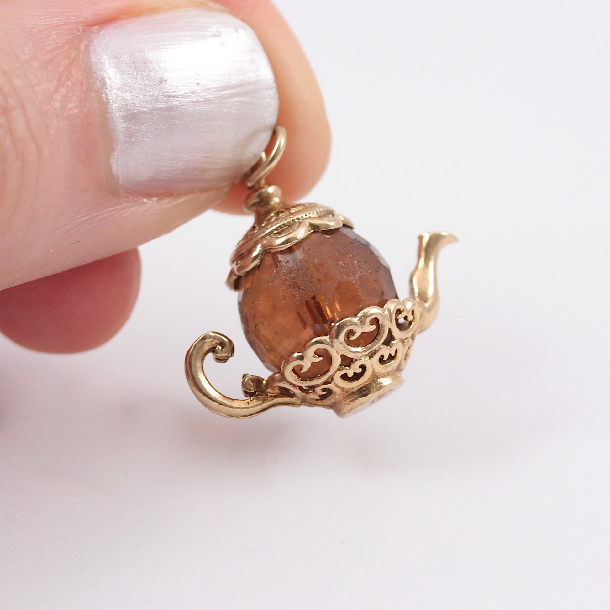 A lovely vintage 9ct gold and brown crystal teapot charm, by NUVO.