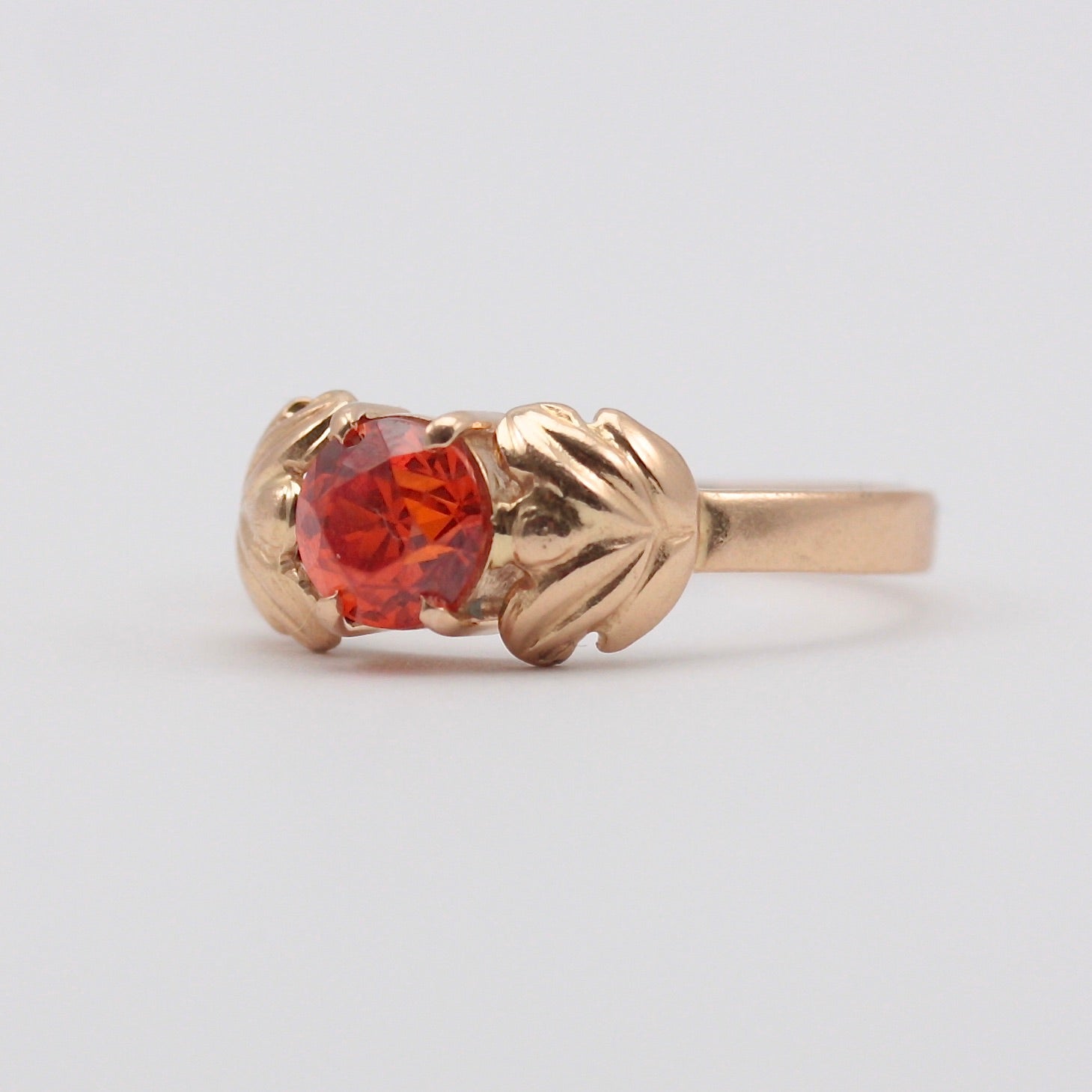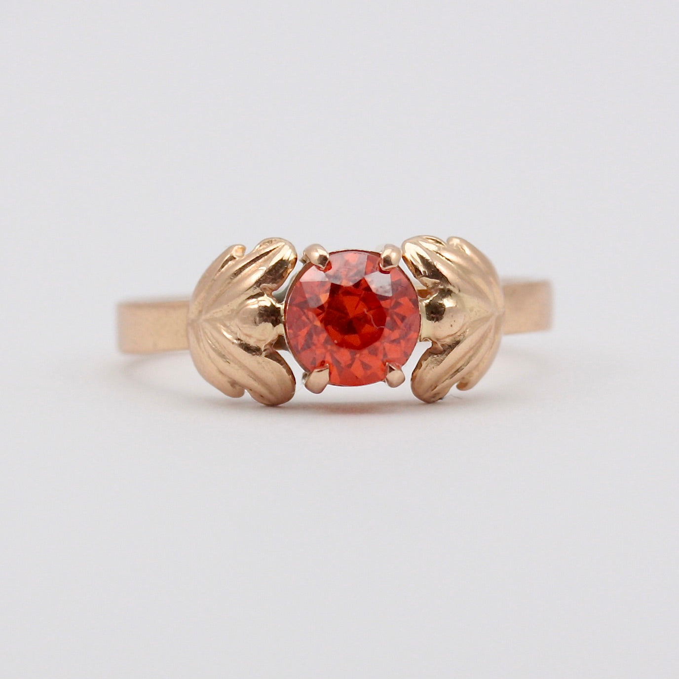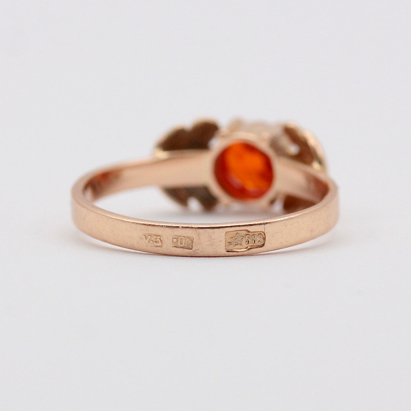 A vintage Soviet Russian solid 14ct gold (the colour of the gold sits between yellow and rose gold), with central orange spessartite garnet.