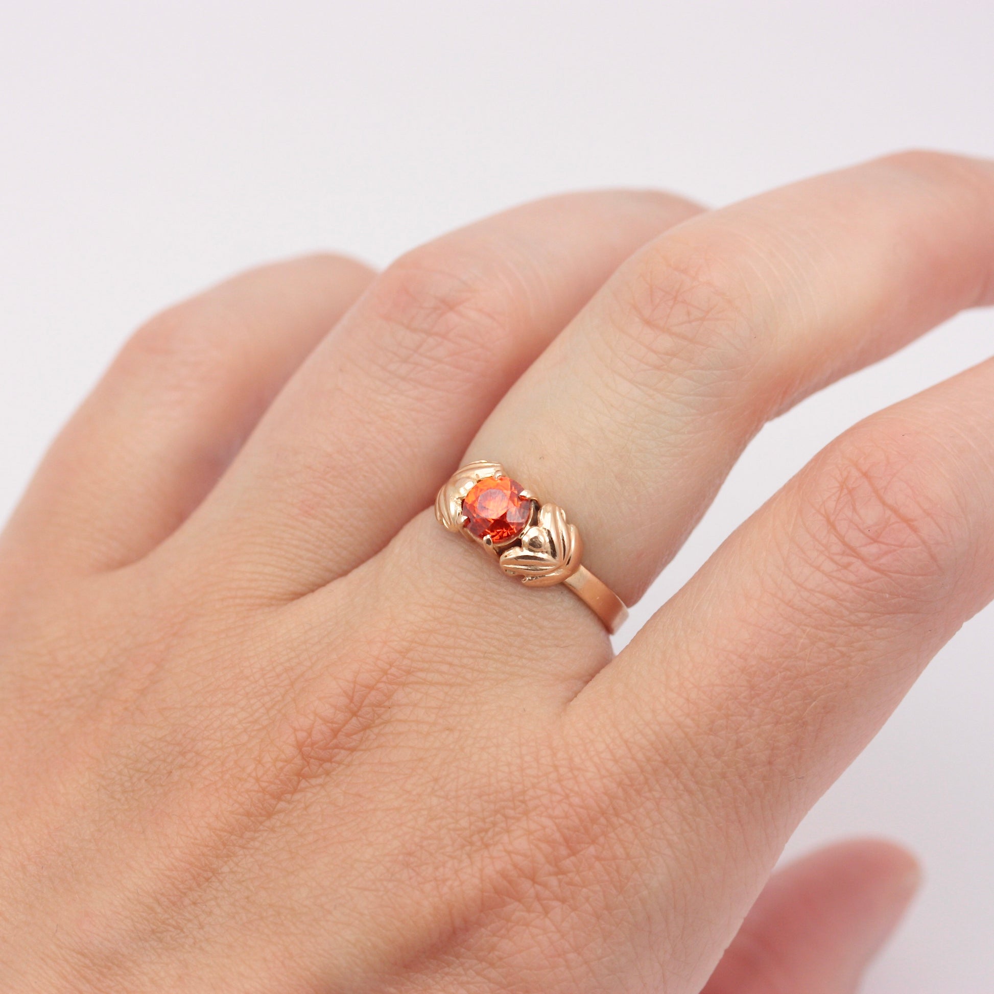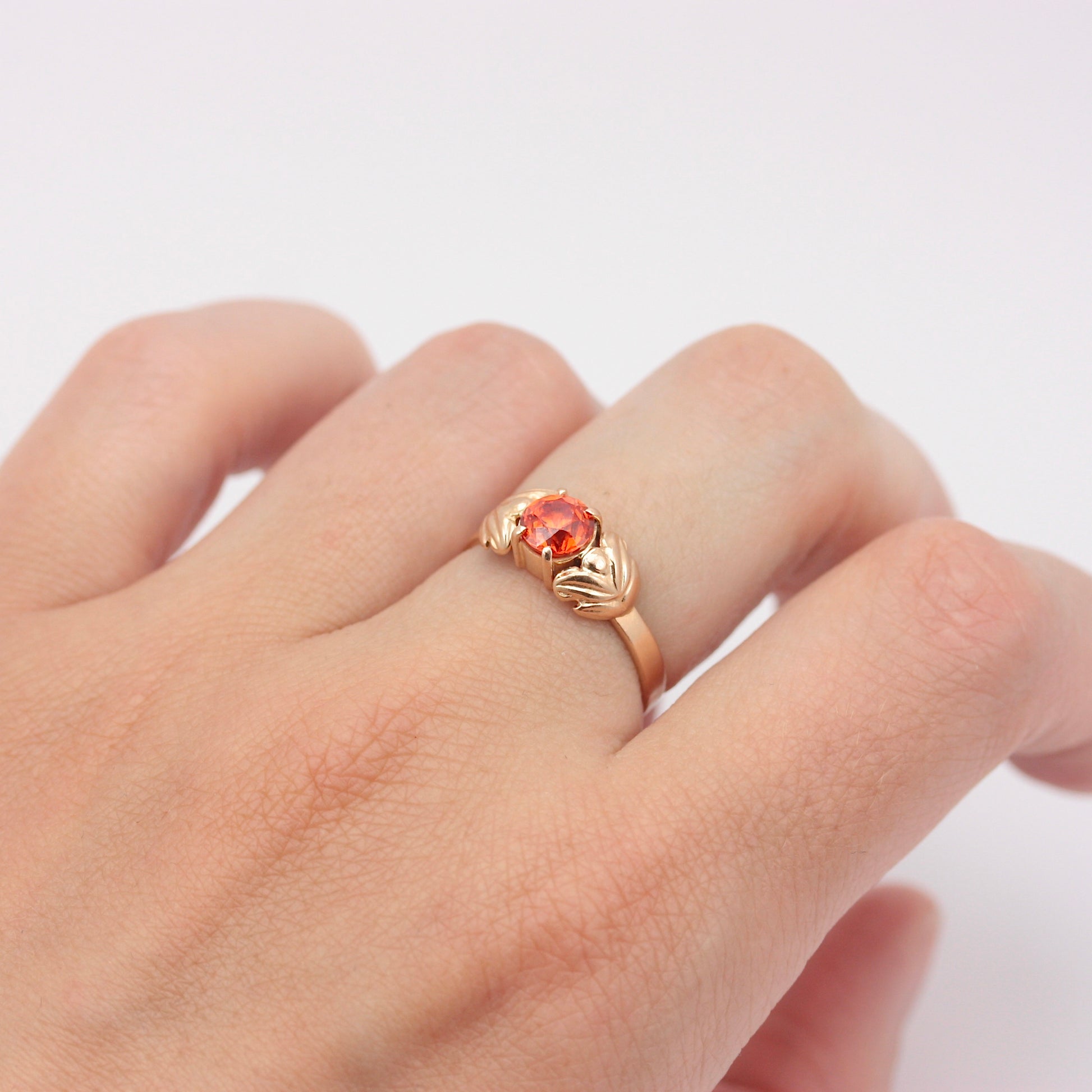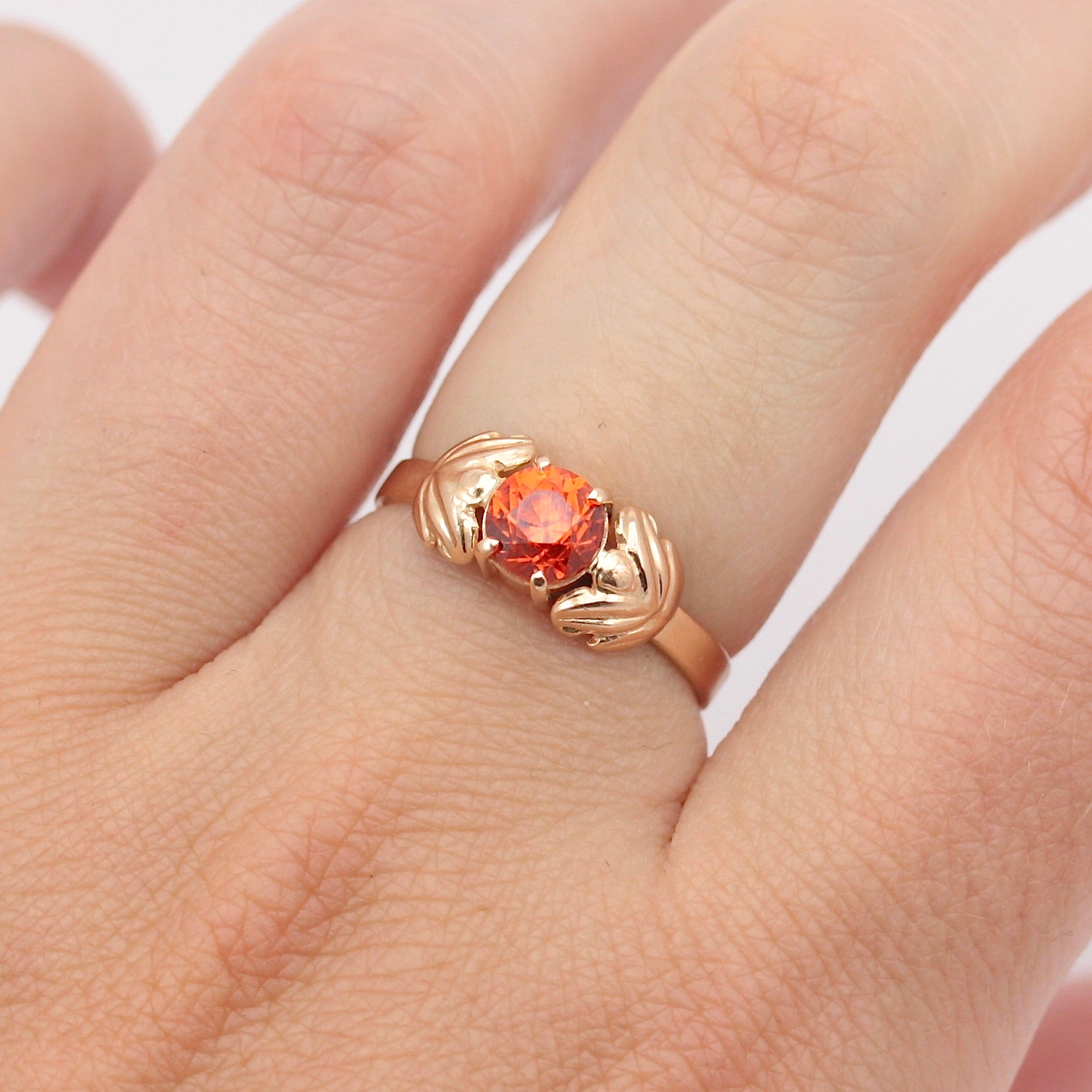 A vintage Soviet Russian solid 14ct gold (the colour of the gold sits between yellow and rose gold), with central orange spessartite garnet.