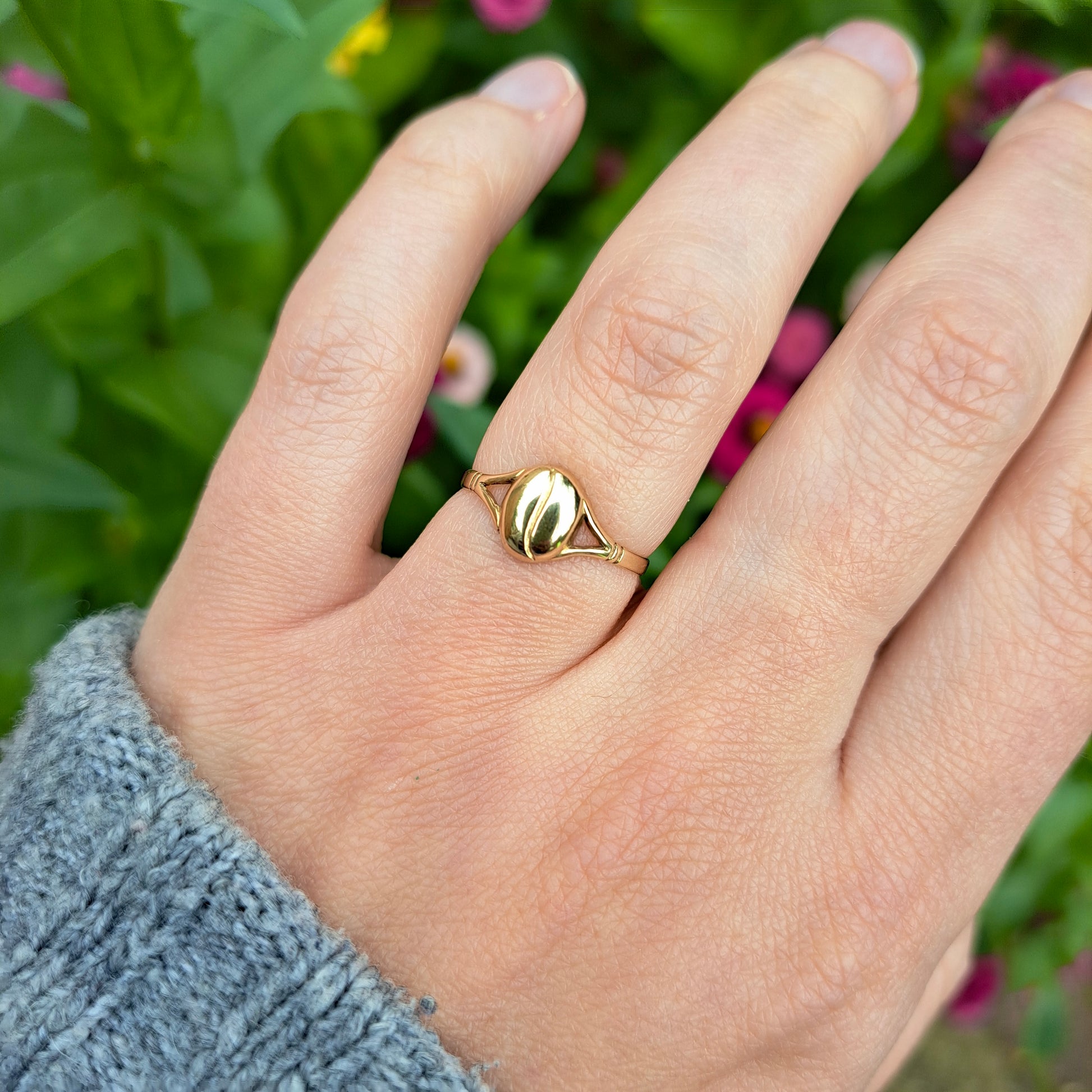 Vintage Solid 9ct Yellow Gold Coffee Bean Ring, 1987