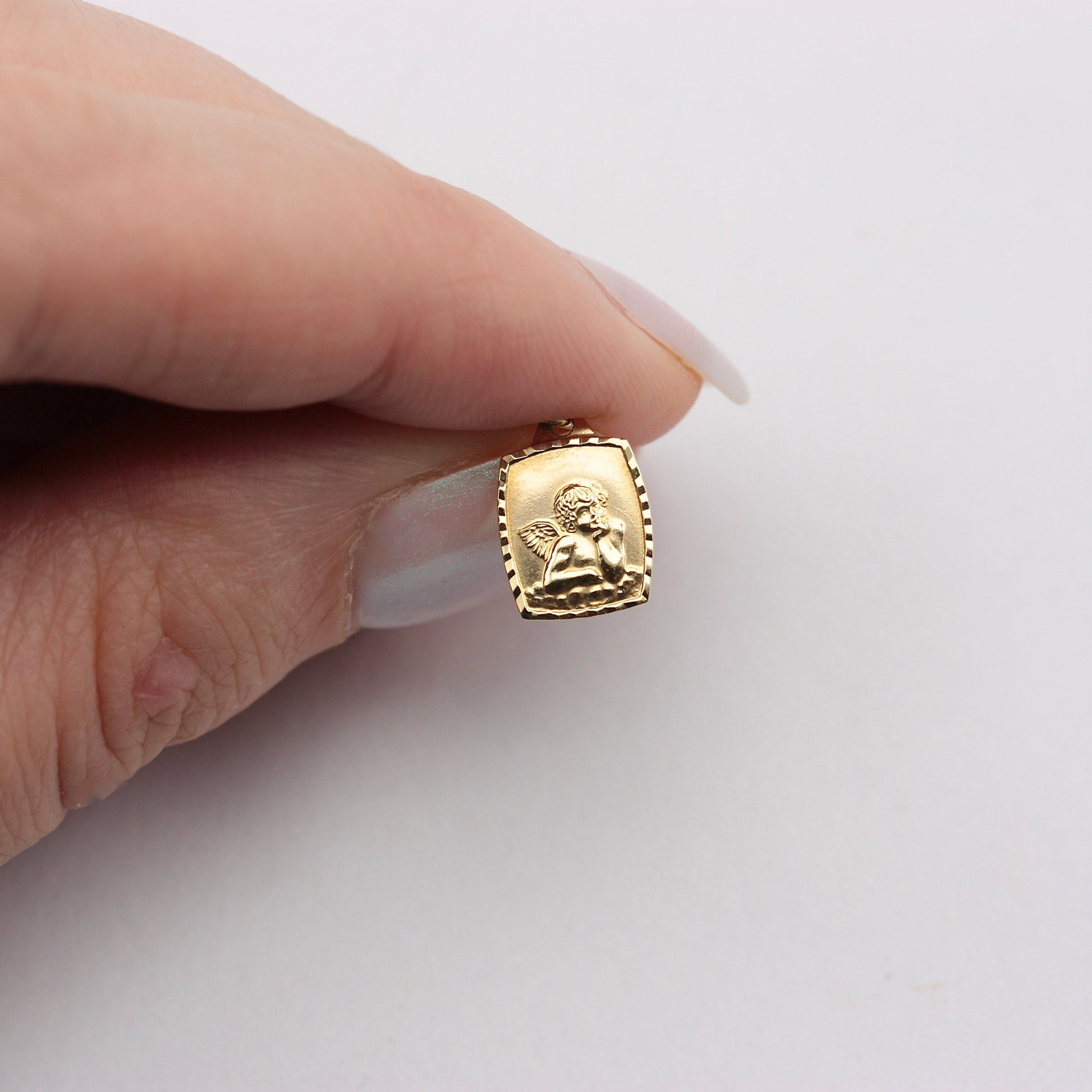 Vintage Tiny 9ct Gold Cherub Plaque Charm, c1970s