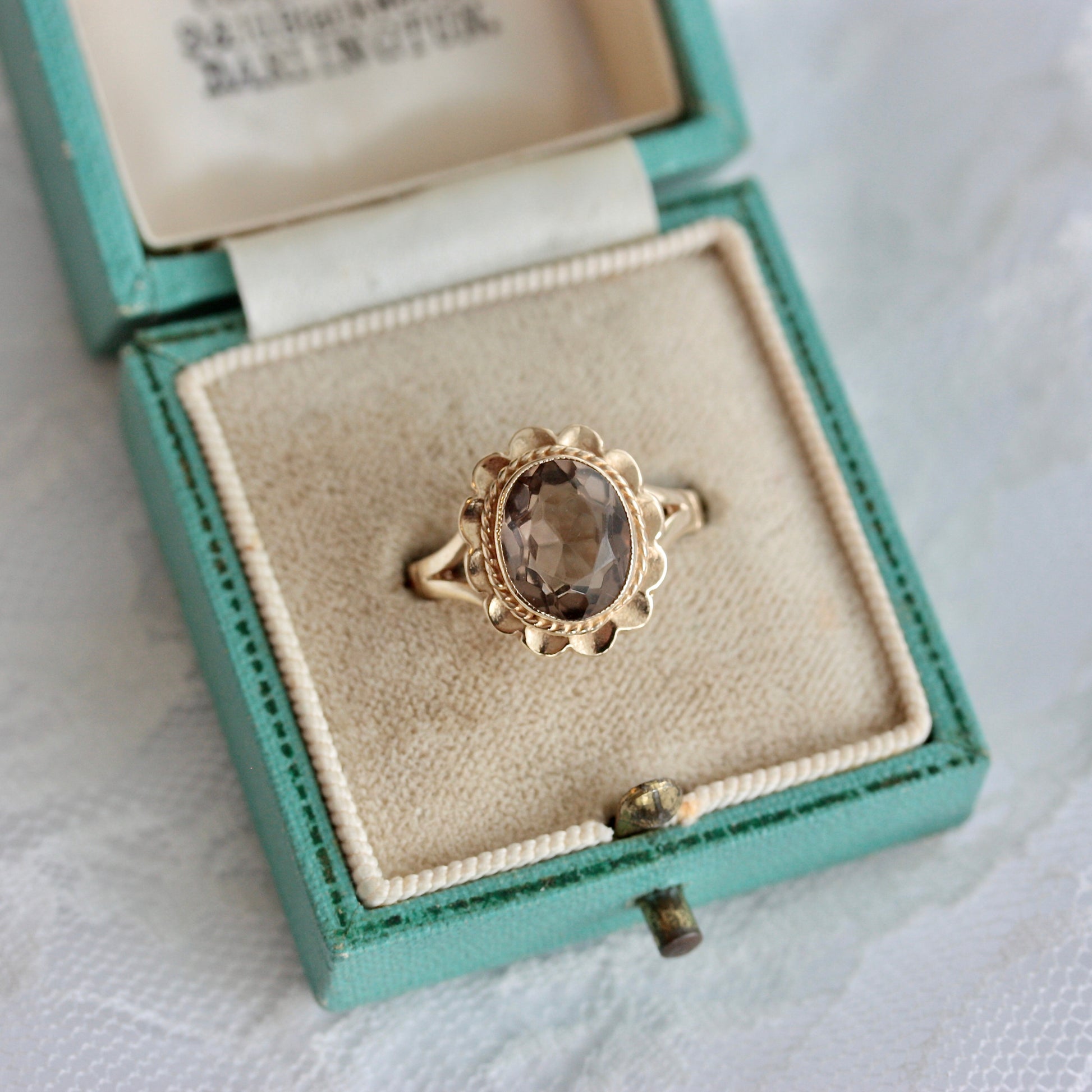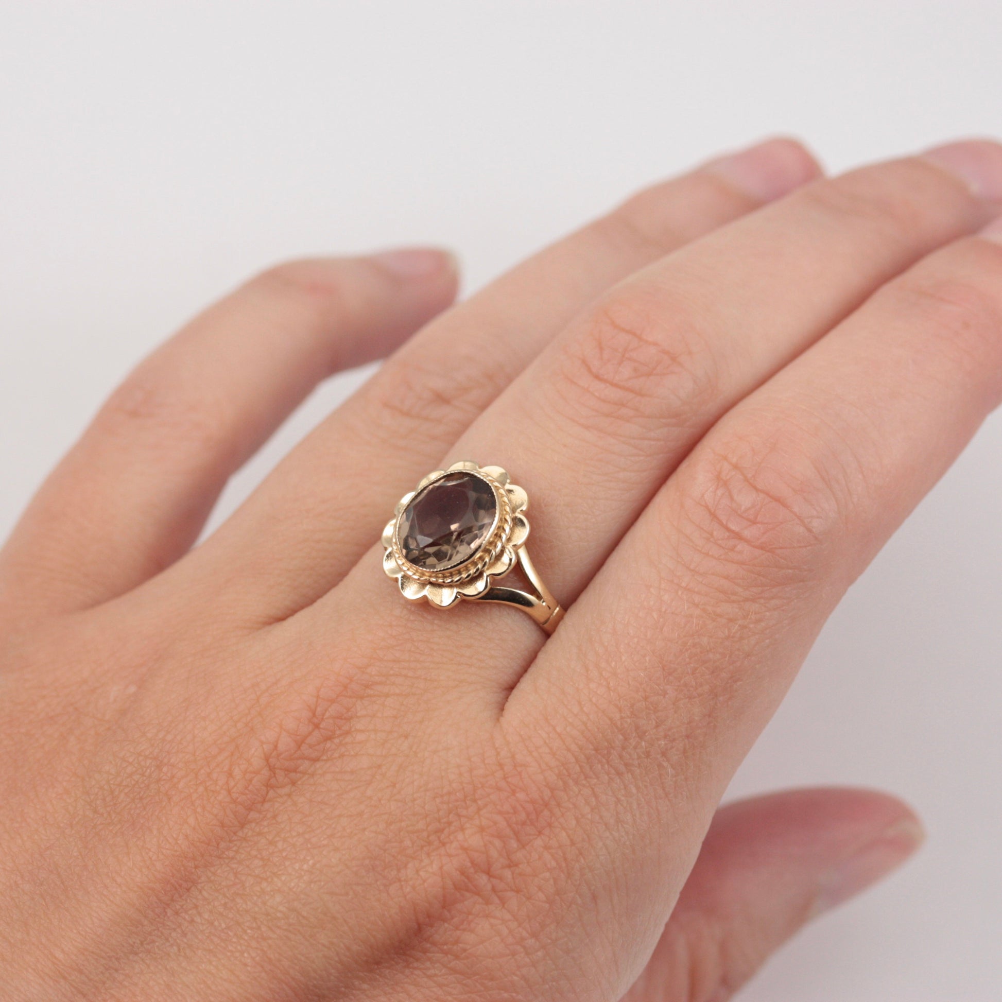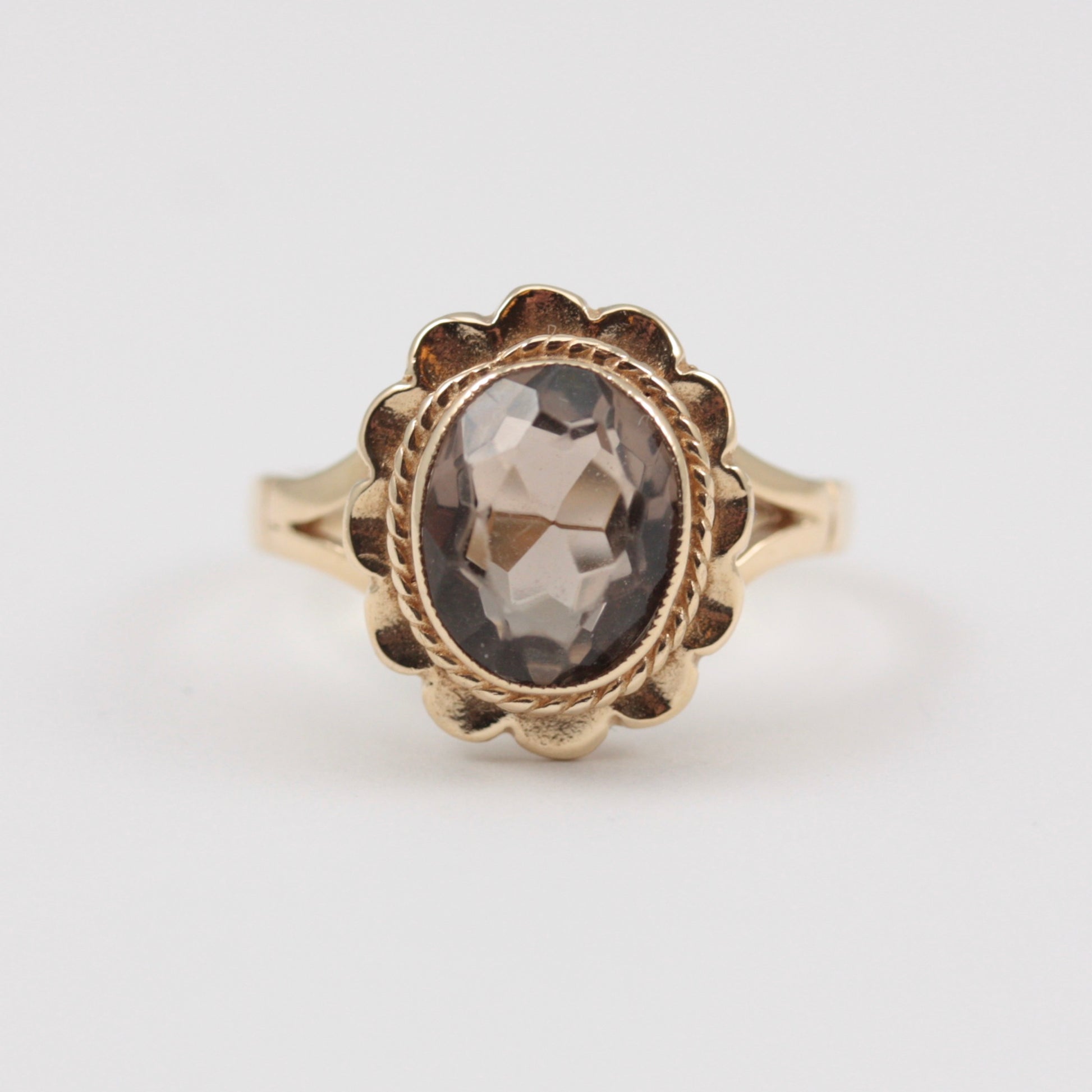 Vintage Yellow Gold Smokey Quartz Fancy Frame Ring