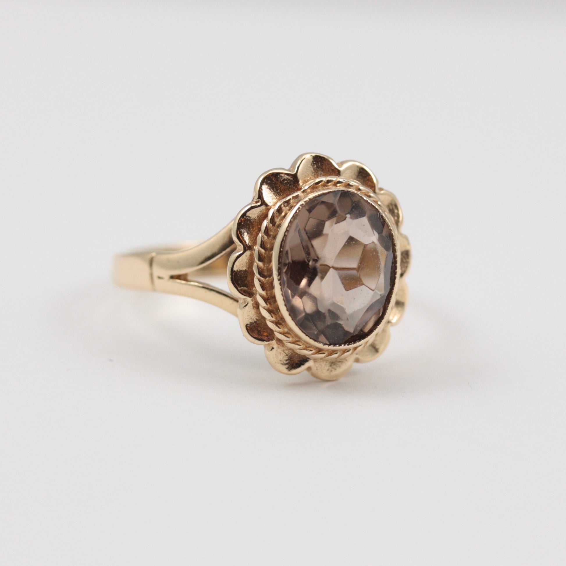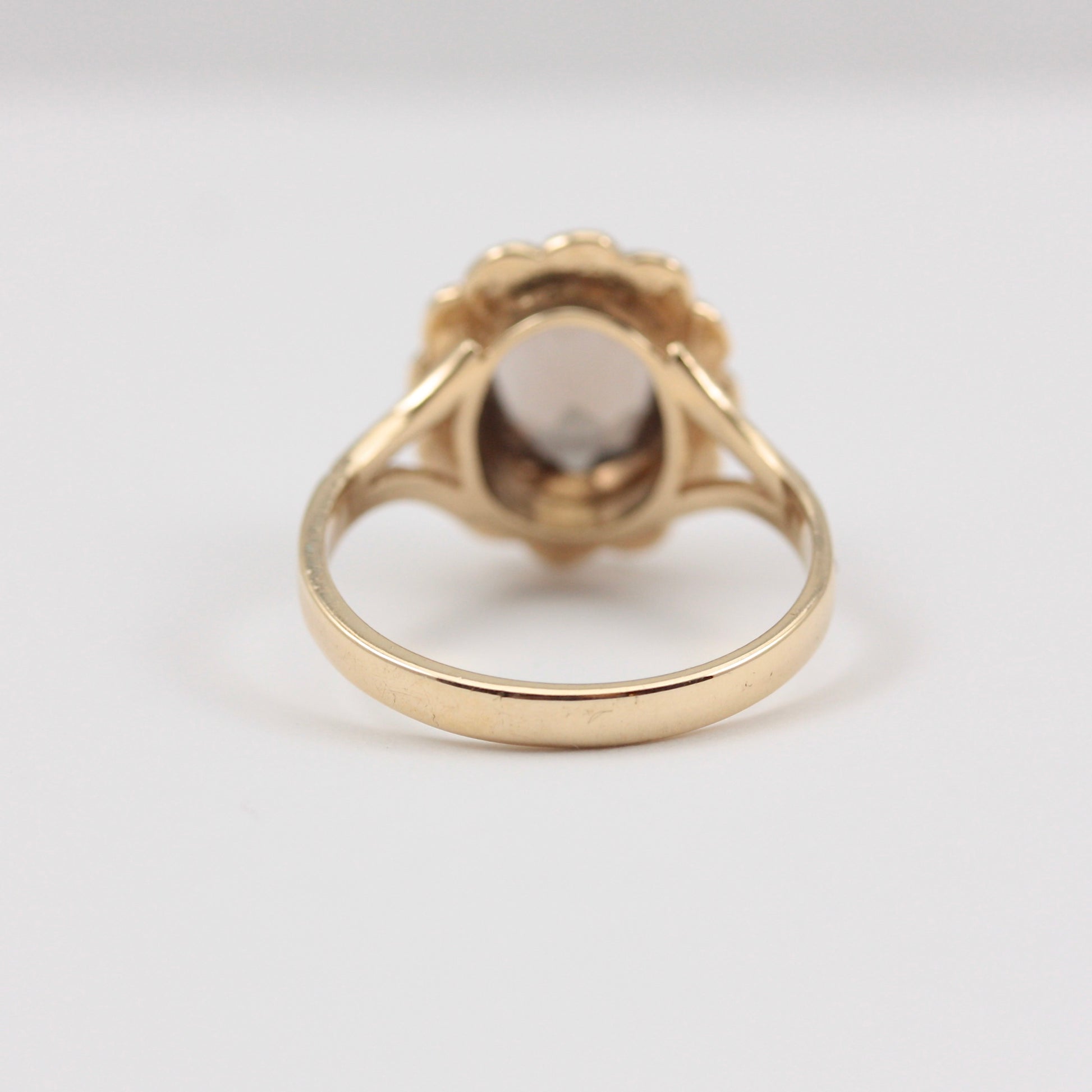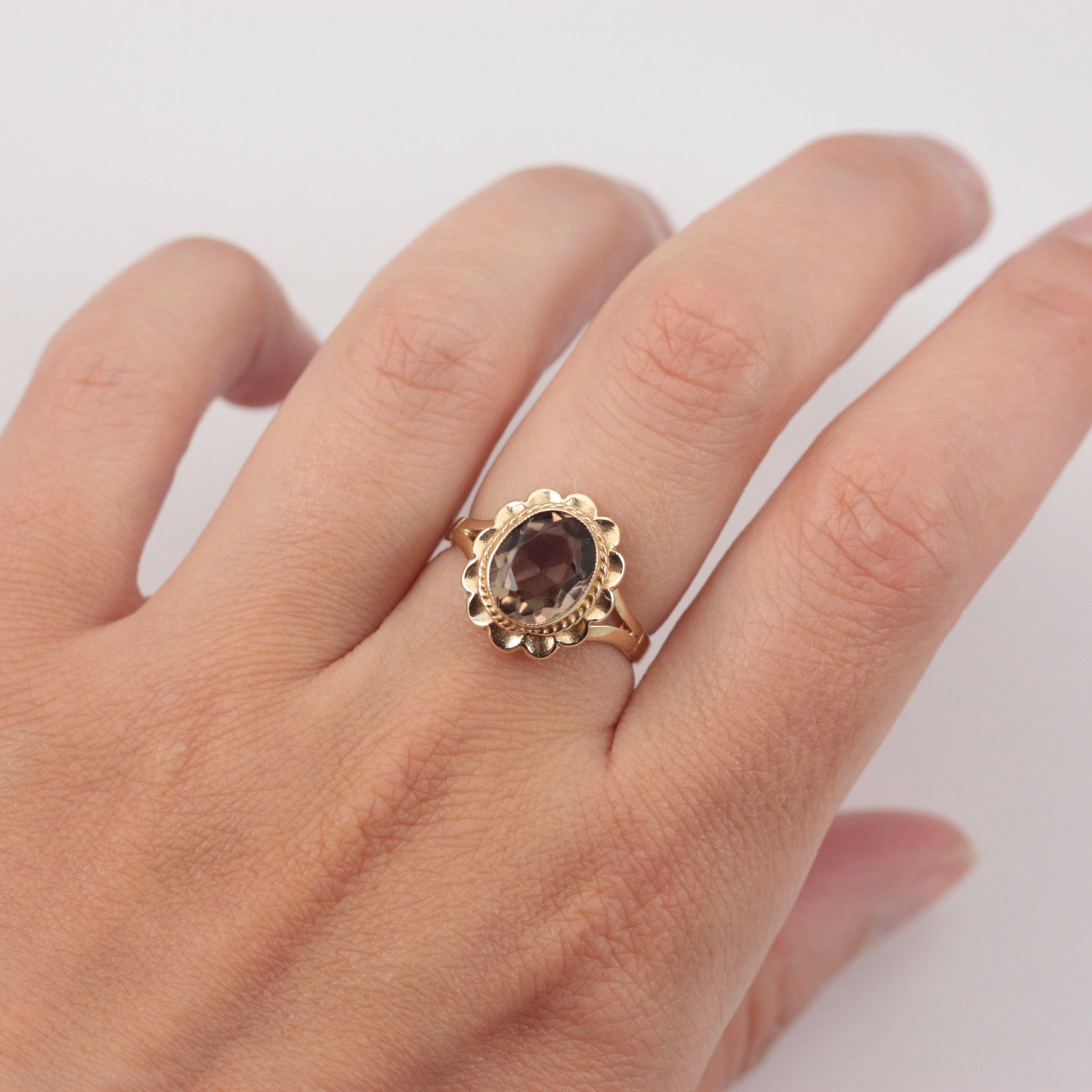Vintage Yellow Gold Smokey Quartz Fancy Frame Ring